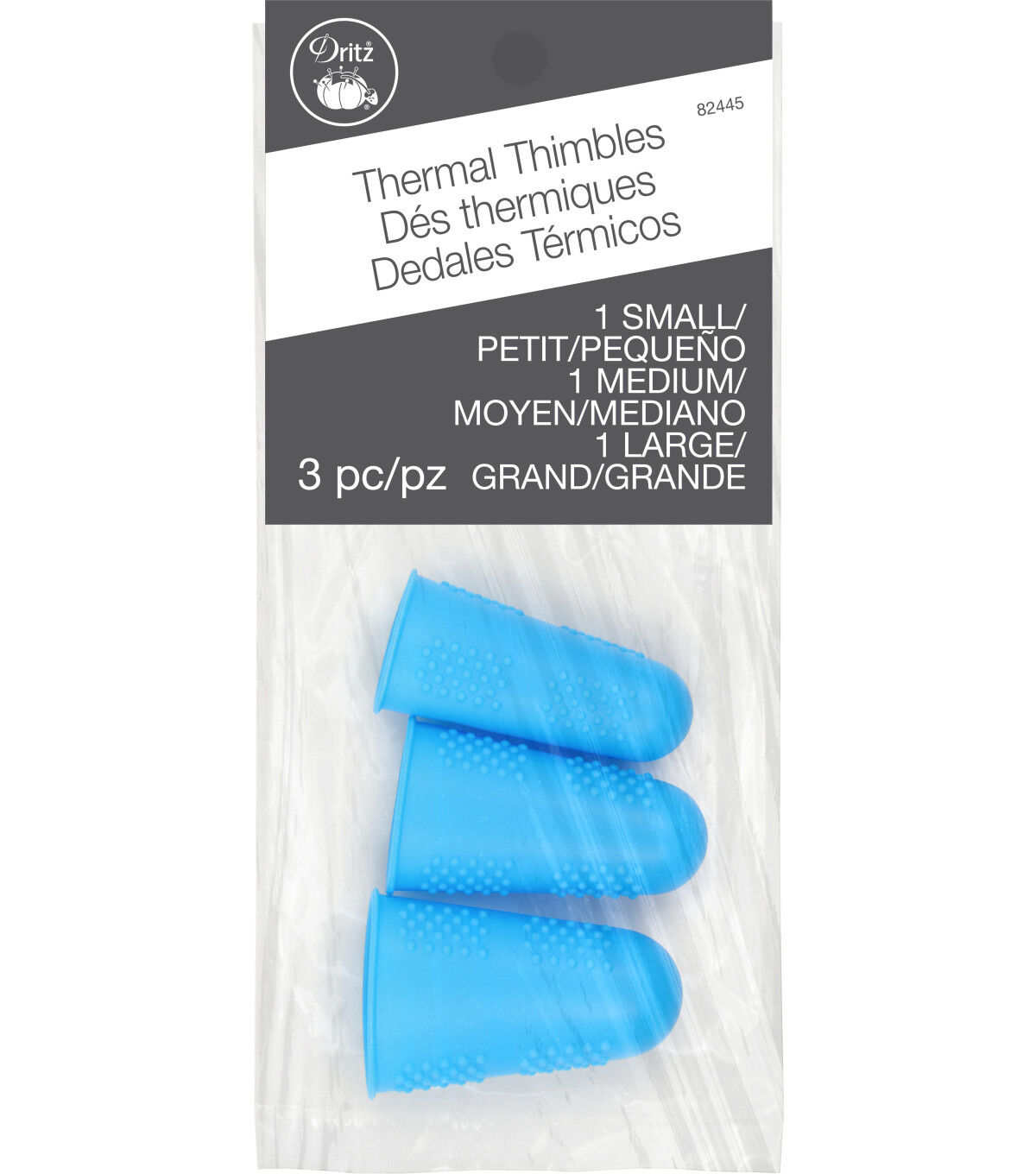 Use the Dritz Assorted Thermal Thimbles to protect your fingers from heat while ironing. This pack includes three thimbles in different sizes for you to pick the one that best fits your finger. These heat-resistant thimbles are designed to fit either the thumb or index finger. Keep the thimble away from pointed objects and needles.