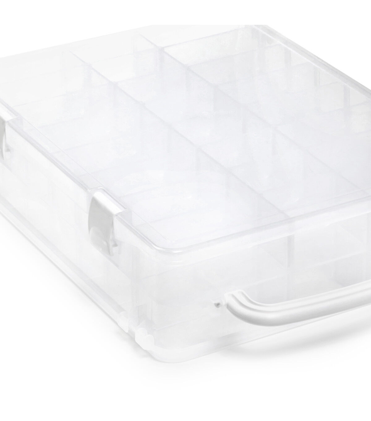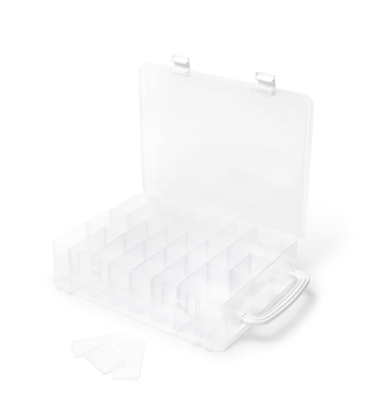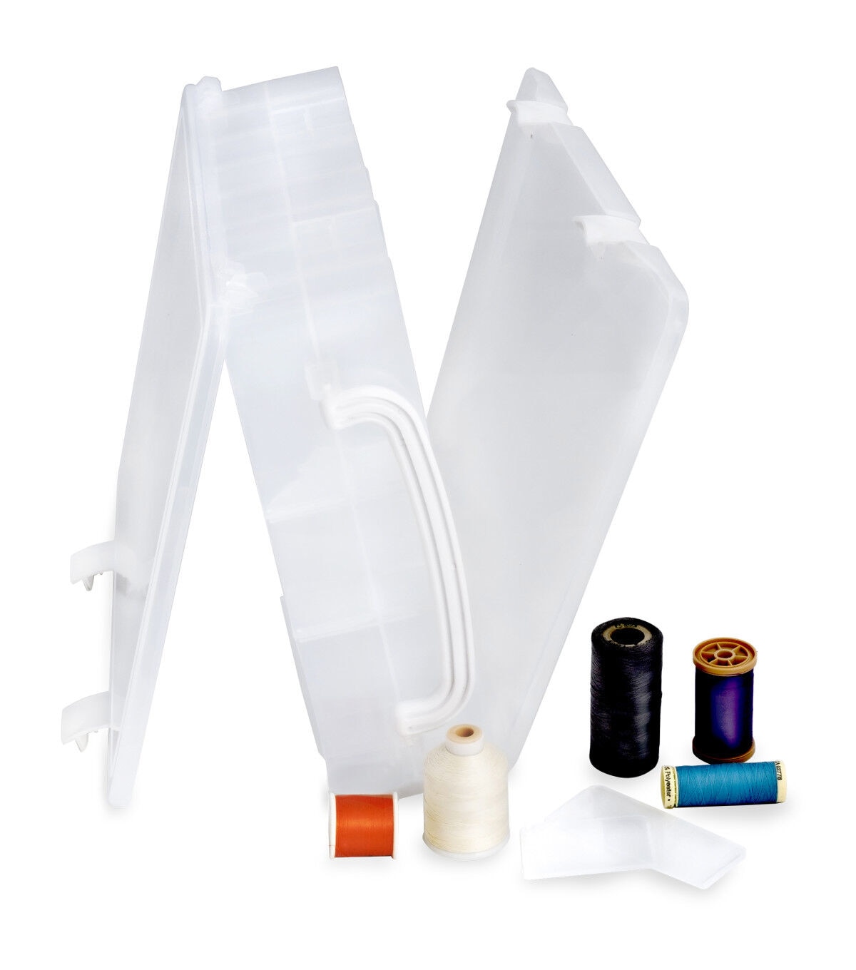 Keep your thread spools organized and dust-free in the Dritz Double-sided Thread Storage Box with 48 Compartments. With the removable dividers, you can easily store different types and sizes of thread spools in this sturdy box. It is designed with a handle for easy carrying and folds down for compact storage. This 13 x 10.12 x 3.25-inch storage box includes one double-sided box with four latches, one handle, 48 compartments and 42 removable dividers.