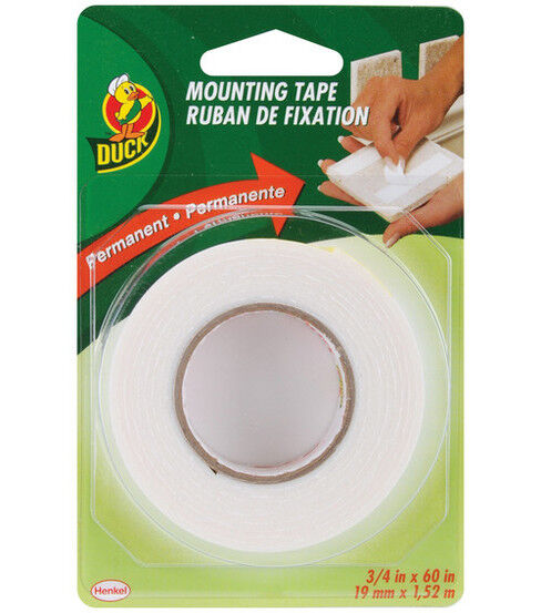 Duck Double Sided Mounting tape has a permanent hold and is great for repairs, and multiple craft projects. Tape is 3/4"X60"