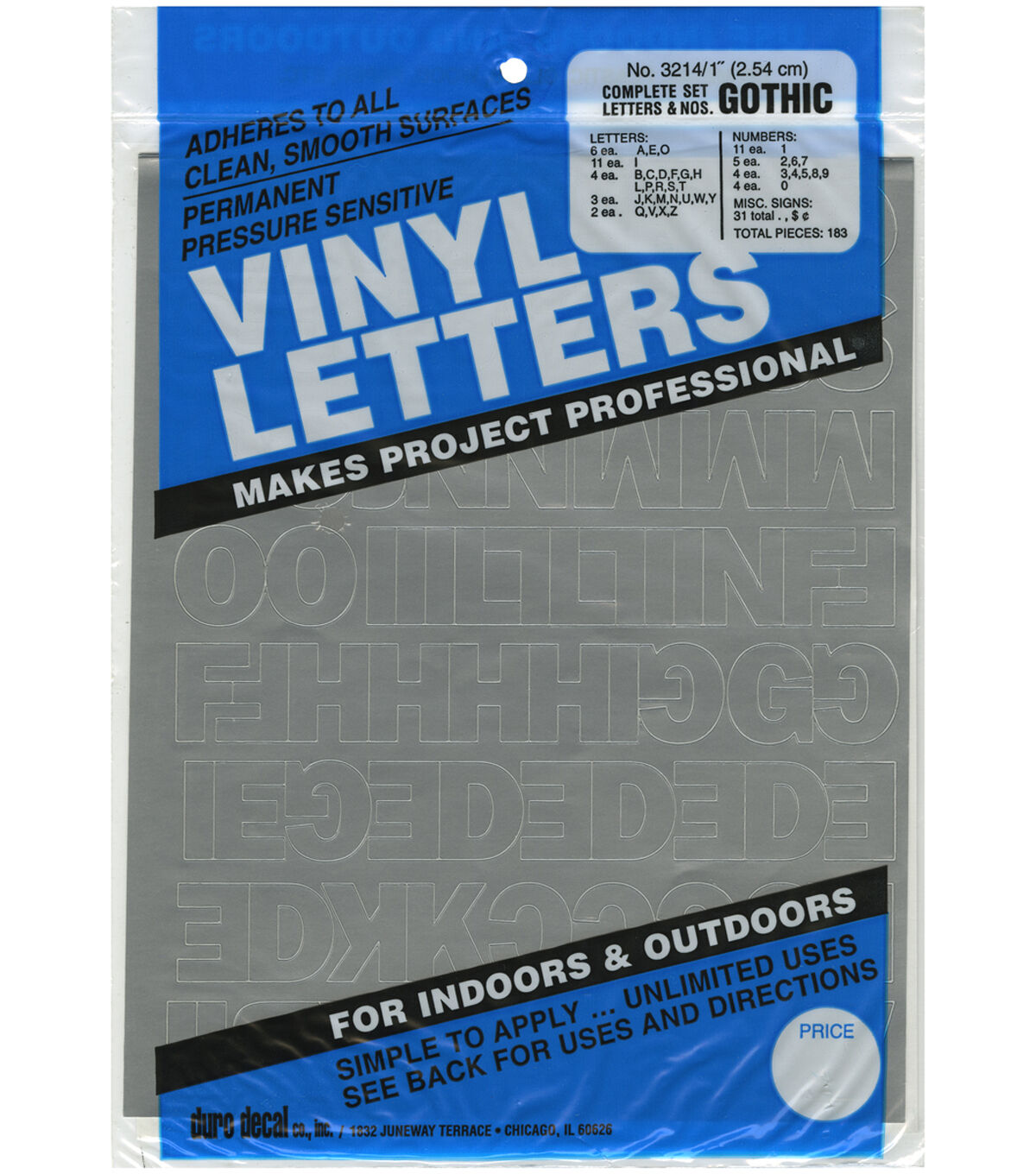 The Duro Permanent Adhesive Vinyl Letters & Numbers make personalization easy and enjoyable. These pressure-sensitive, adhesive backed vinyl characters will adhere to any smooth surface including metal, plastic, glass, wood, paper, fiberglass and others. You can use them both indoors and outdoors for your school projects, posters, signs, crafts, personalization, identification, mailboxes, recreational vehicles and more. This pack contains 183 vinyl characters including letters, numbers and symbols. Available in different colors, each sold separately.