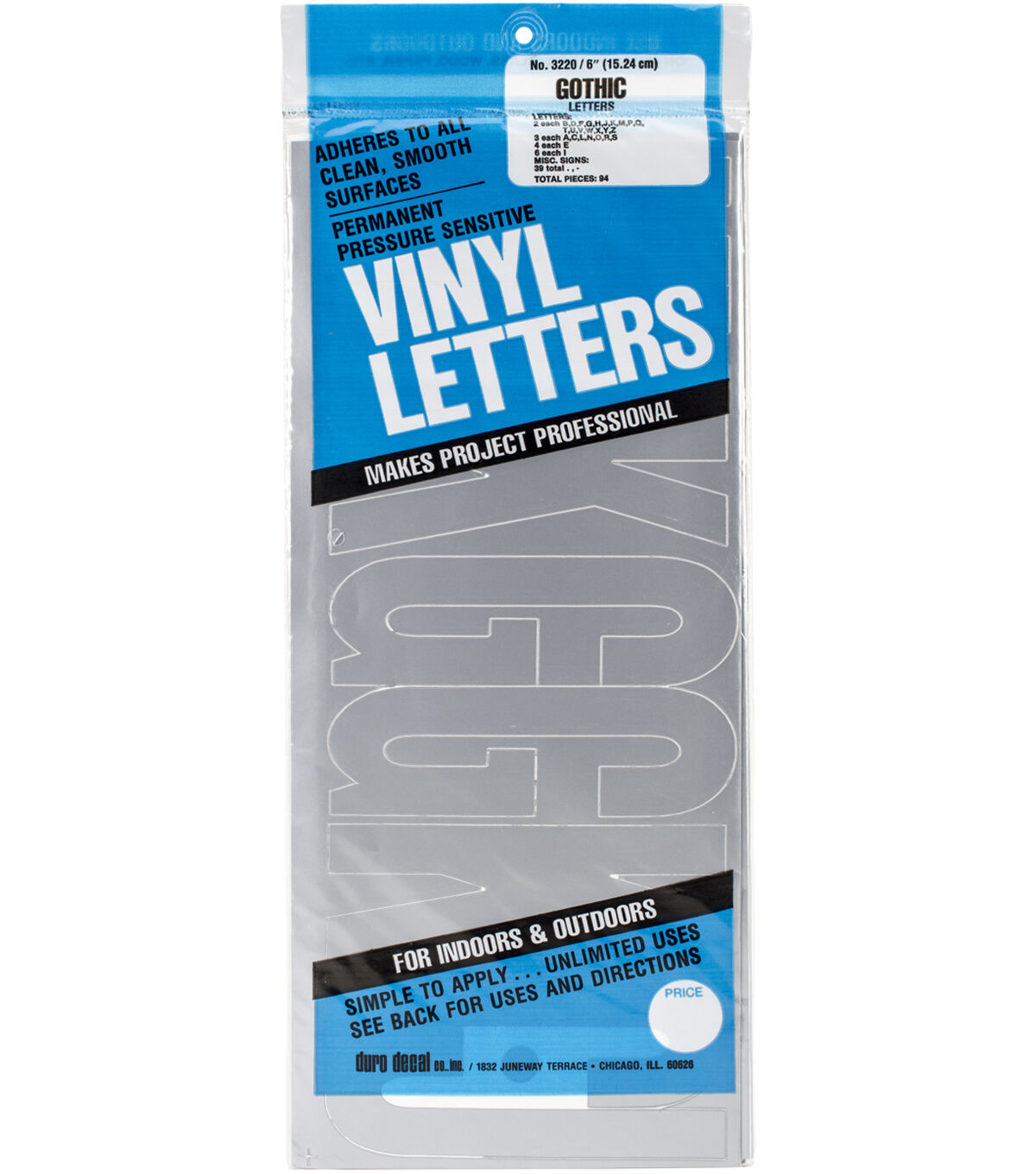 Create names, titles, phrases, greetings and more with the Duro Permanent Adhesive Vinyl Letters. Pressure-sensitive and adhesive backed, these vinyl letters adhere to several smooth surfaces including metal, plastic, glass, wood, paper, fiberglass and others. They are ideal for both indoor and outdoor use, and make a great addition to school projects, posters, signs, crafts, personalization, identification, mailboxes, recreational vehicles and more. This pack contains 94 vinyl letters and symbols. Available in various colors, sold individually.