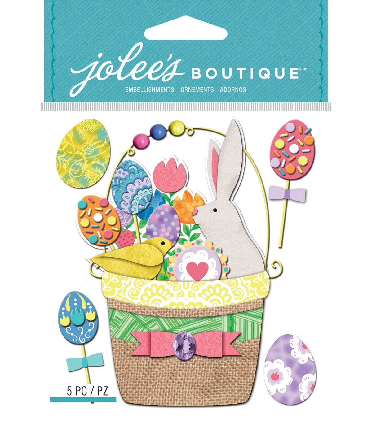Nothing says spring like things that are delightful and cute. These Jolee's Boutique - Easter Basket embellishments have spring written all over them. Adorable detail, easy to use, these will be the perfect accent to add to your springtime crafts.