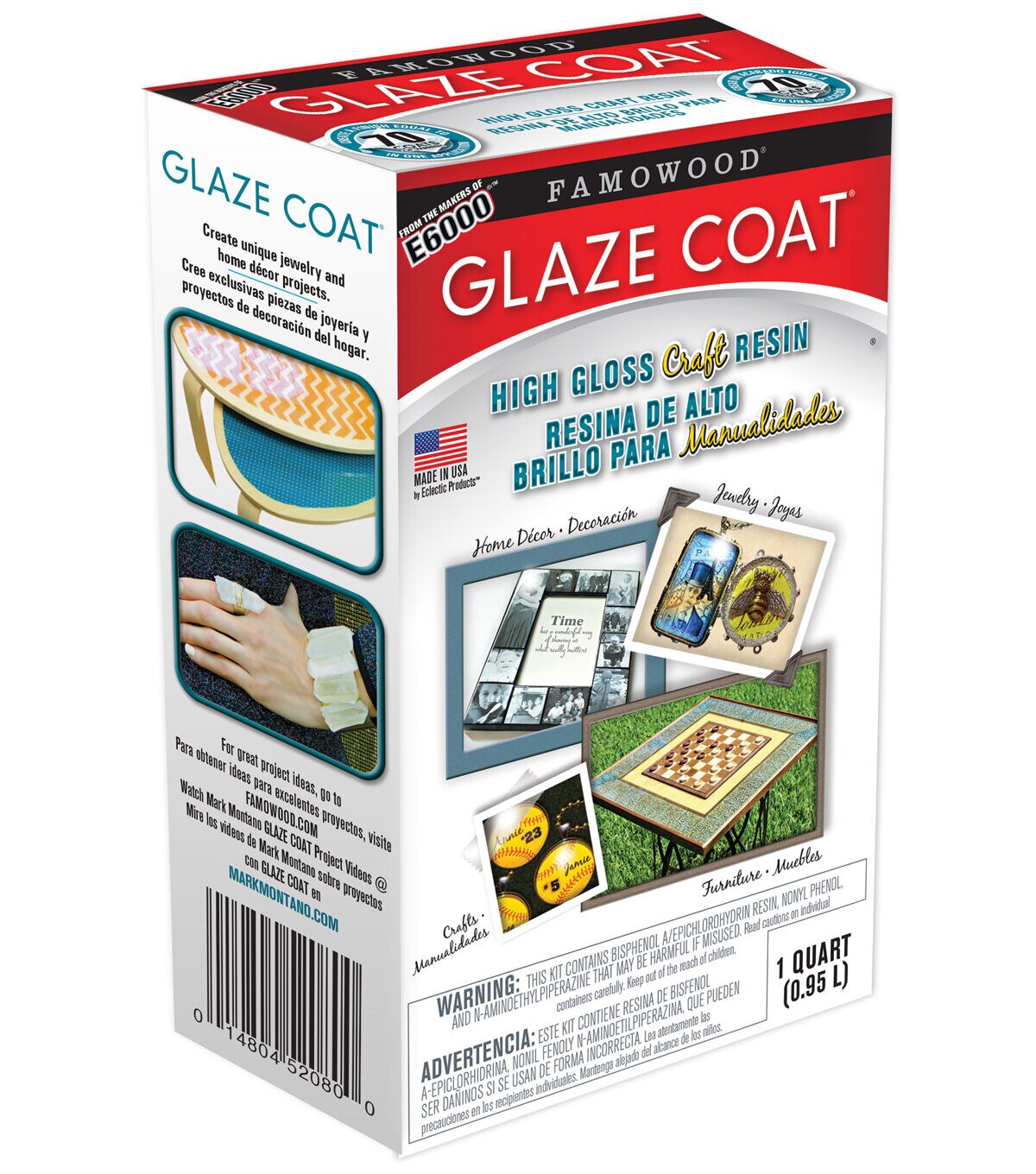 Use the Eclectic Inc.Famowood 1 Quart Glaze Coat Craft Resin to create, restore, beautify and protect a wide range of indoor projects. This versatile, high-gloss craft resin can be used to design unique jewelry pieces, or to coat any smooth, rough, stained, painted, old or new surface. It’s self-leveling, resists temperatures up to 120 °F, and cures to a smooth, hard professional finish. The pack contains one quart of ultra-clear epoxy resin.