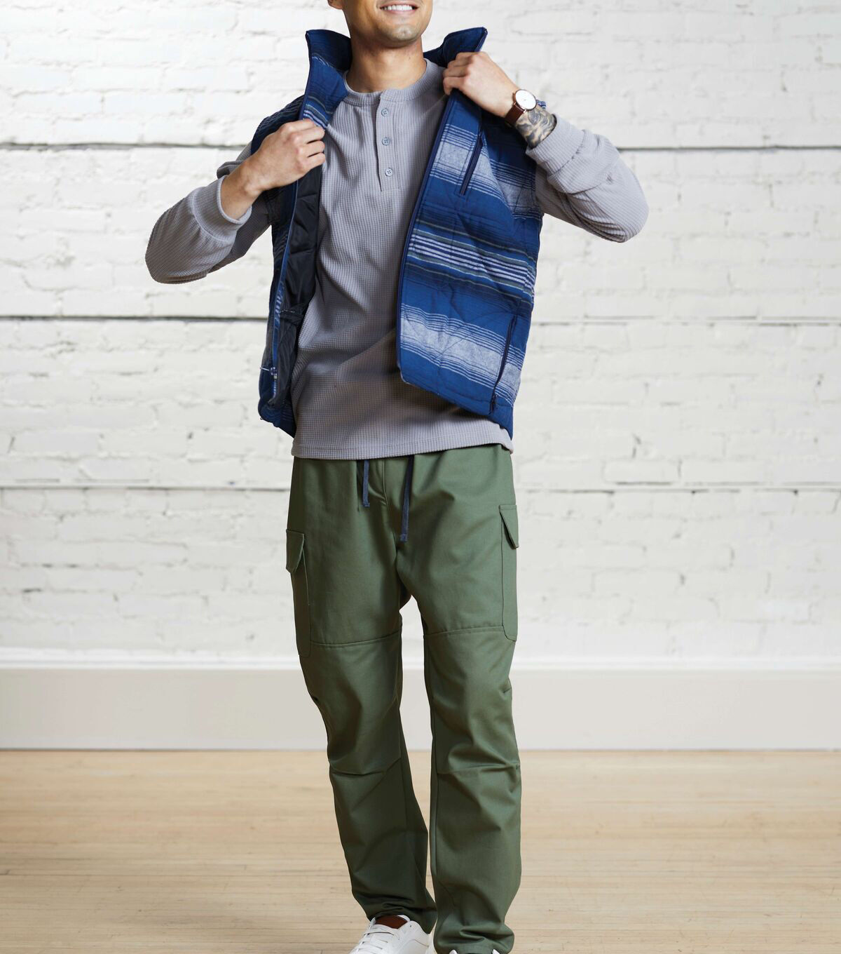 • Eddie Bauer Blue Stripe Quilted Polyester Shirting Fabric