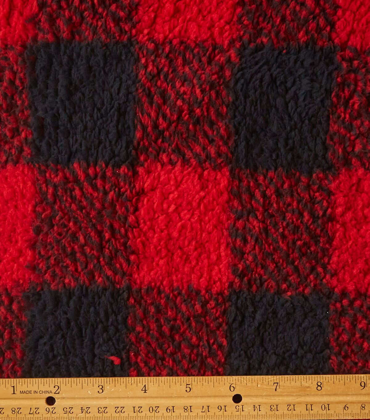 • Eddie Bauer Red & Black Buffalo Check Faux Shearling Sherpa Fabric