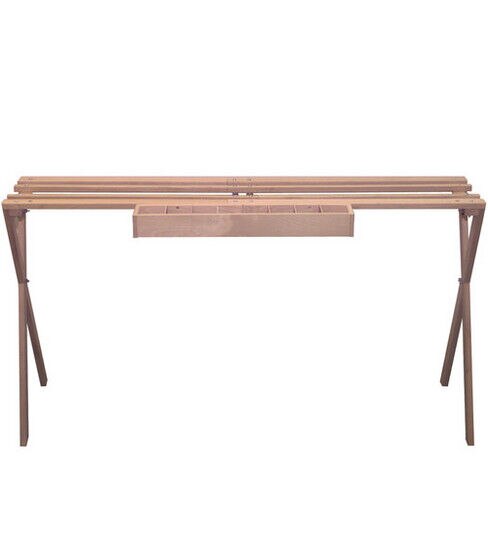 EDMUND-Floor Standing Rug Hooking Frame keeps rugs off your lap and is more comfortable for work. Rug stays in place without slipping. Frame includes a mounted yarn storage unit to hold pre-cut yarns and latch hook. Ample frame width allows this frame to straddle even the plushest of easy chairs. Measures: 30"H x 45"L x 17"W. Made in US.