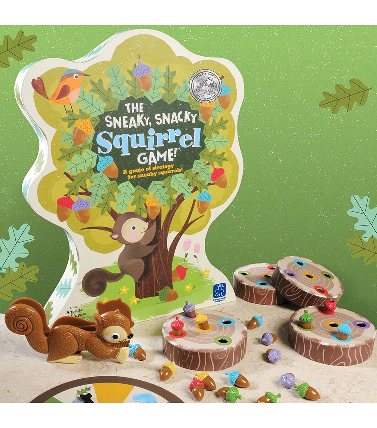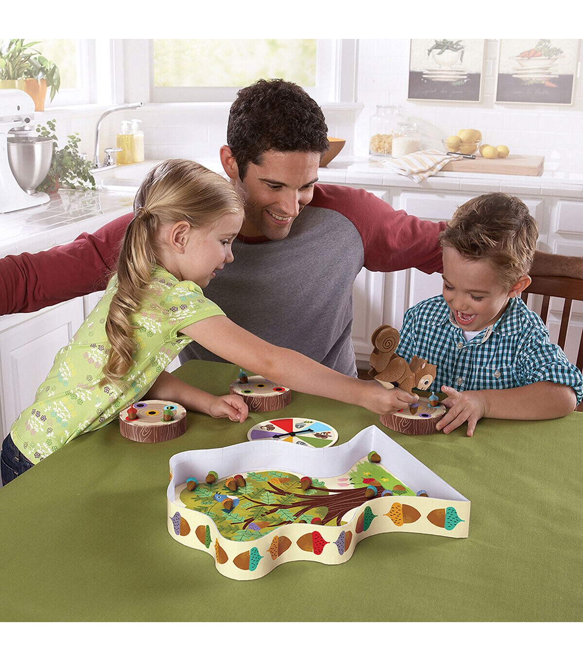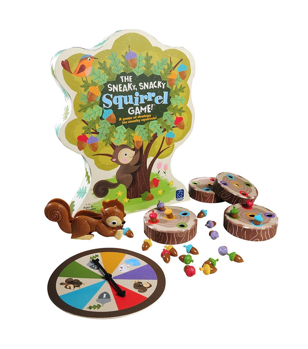- Spin the spinner and pick up the matching acorn with your Squirrel Squeezer, placing it in your log. The first to collect 5 acorns wins