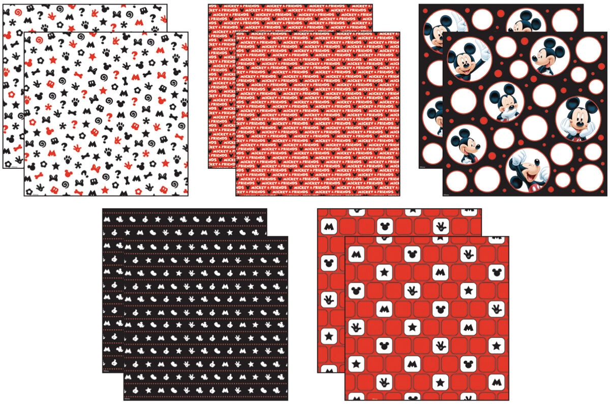 EK SUCCESS- Mickey Mouse Paper Packs are the ideal way to add a special touch to your vacation pages, invitations, cards, and much more. Each package contains 10- 12" x 12" textured papers, all with a red, black, and white Mickey Mouse theme. Acid Free, Lignin Free. Made in China.