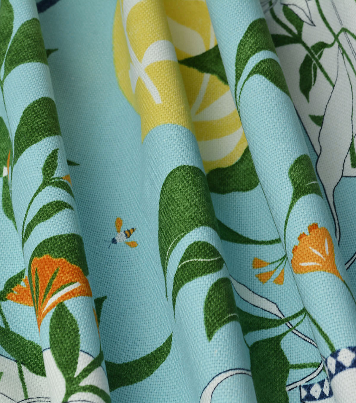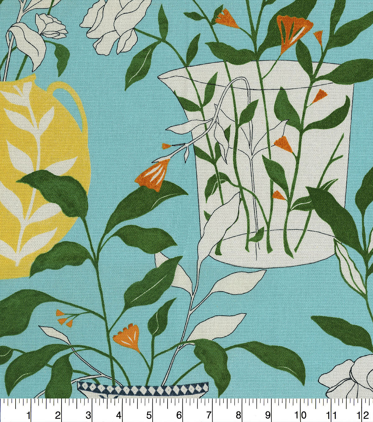 Elana Gabrielle Blossoms + Vessels, a 40's fashioned print we visit a modern take on Greek vases in a sweet garden setting. Printed on 100% cotton basketweave makes for it great for upholstery, throw pillows, table top, tote bags and more.