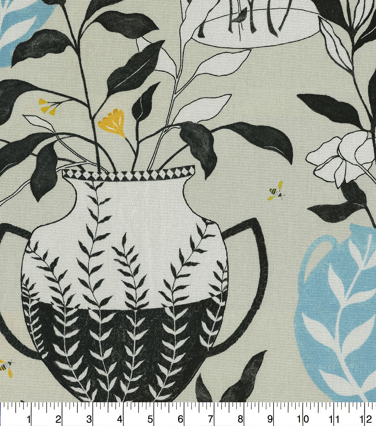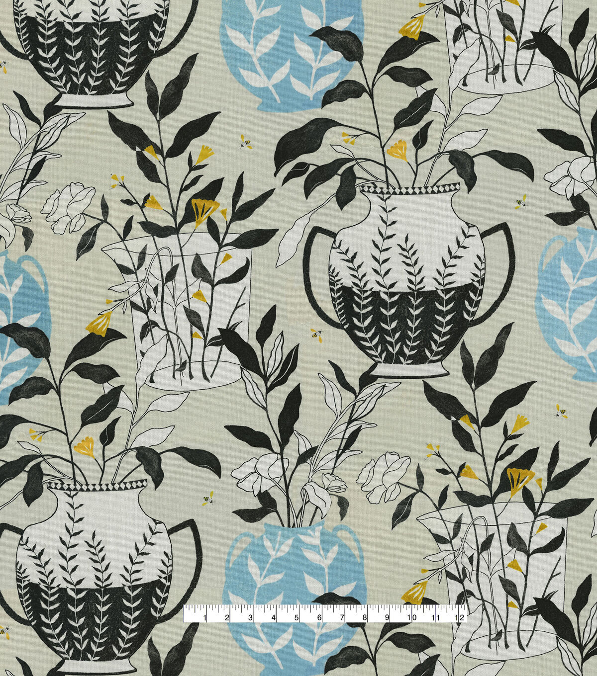 Elana Gabrielle Blossoms + Vessels, a 40's fashioned print we visit a modern take on Greek vases in a sweet garden setting. Printed on 100% cotton basketweave makes for it great for upholstery, throw pillows, table top, tote bags and more.