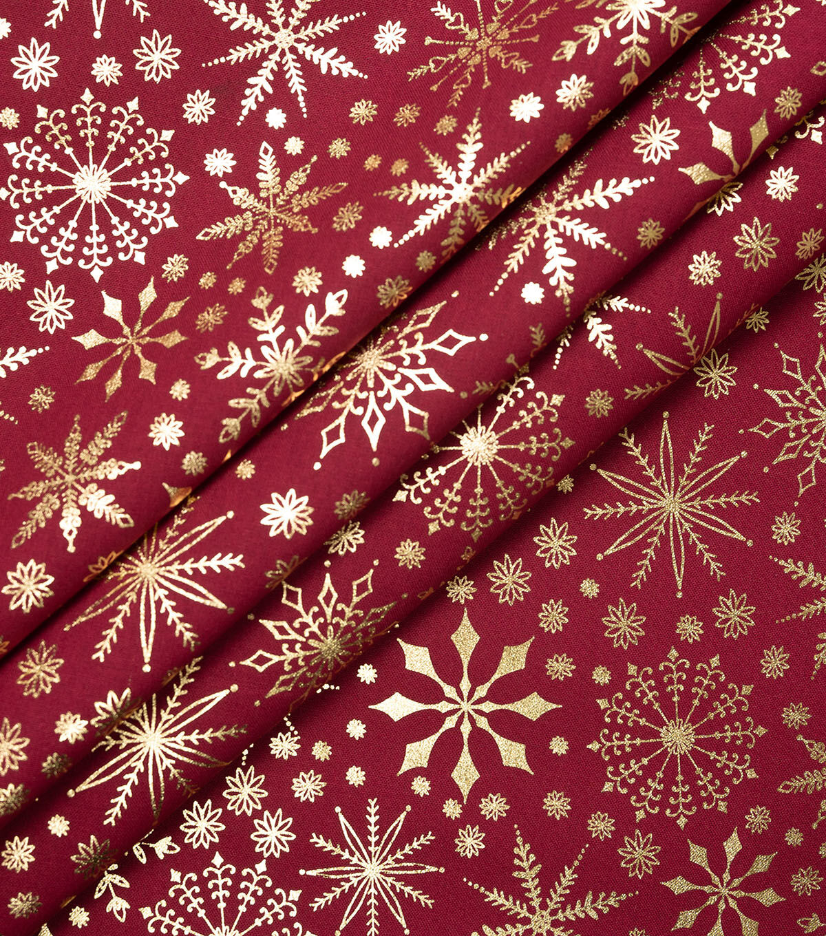 Get in the Holiday Spirit with Elegant ed Snowflakes on Red Christmas Foil Cotton Fabric