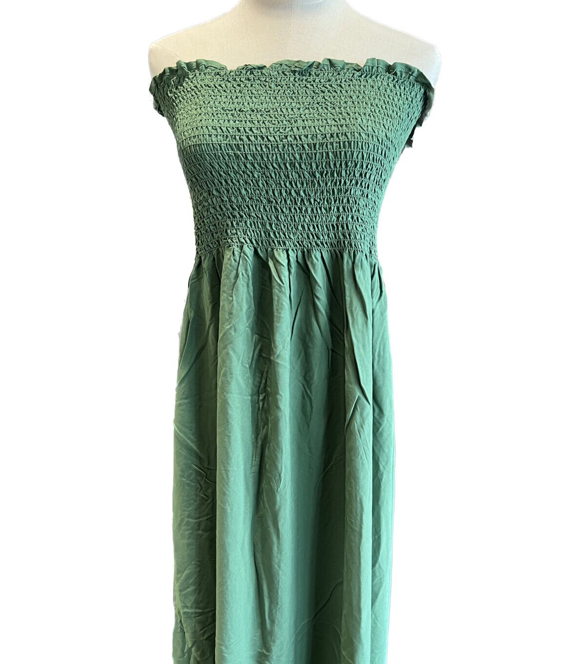 Looking for a versatile fabric that can be used to create a dress in an instant? Look no further than Elm Green Smocked Rayon Challis Fabric! With a width of 53 inches and a content of 87% Rayon and 13% Spandex, this imported fabric is perfect for creating a strapless smock dress that can be customized to your desired length. Whether you prefer a maxi dress or a mini/midi dress, or even a summer blouse, this fabric can be easily tailored to your needs.