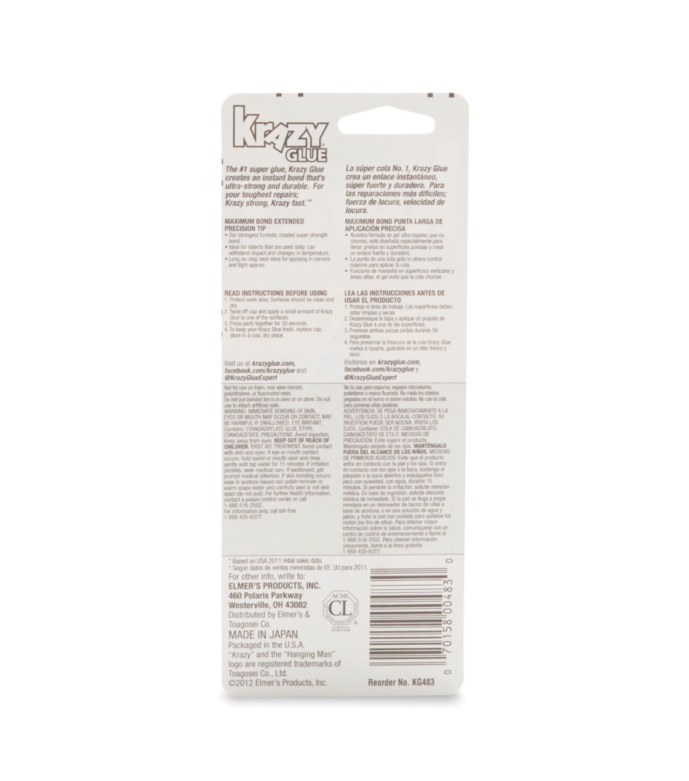 ELMERS/X-ACTO: Krazy Glue Maximum Bond. The number 1 super- glue that creates an instant bond that's ultra-strong and durable. Use it to bond ceramics, plastic, wood, glass, porcelain, metal, leather, rubber and vinyl. This package contains 0.18oz of Krazy Glue. Conforms to ASTM D 4236. Imported.