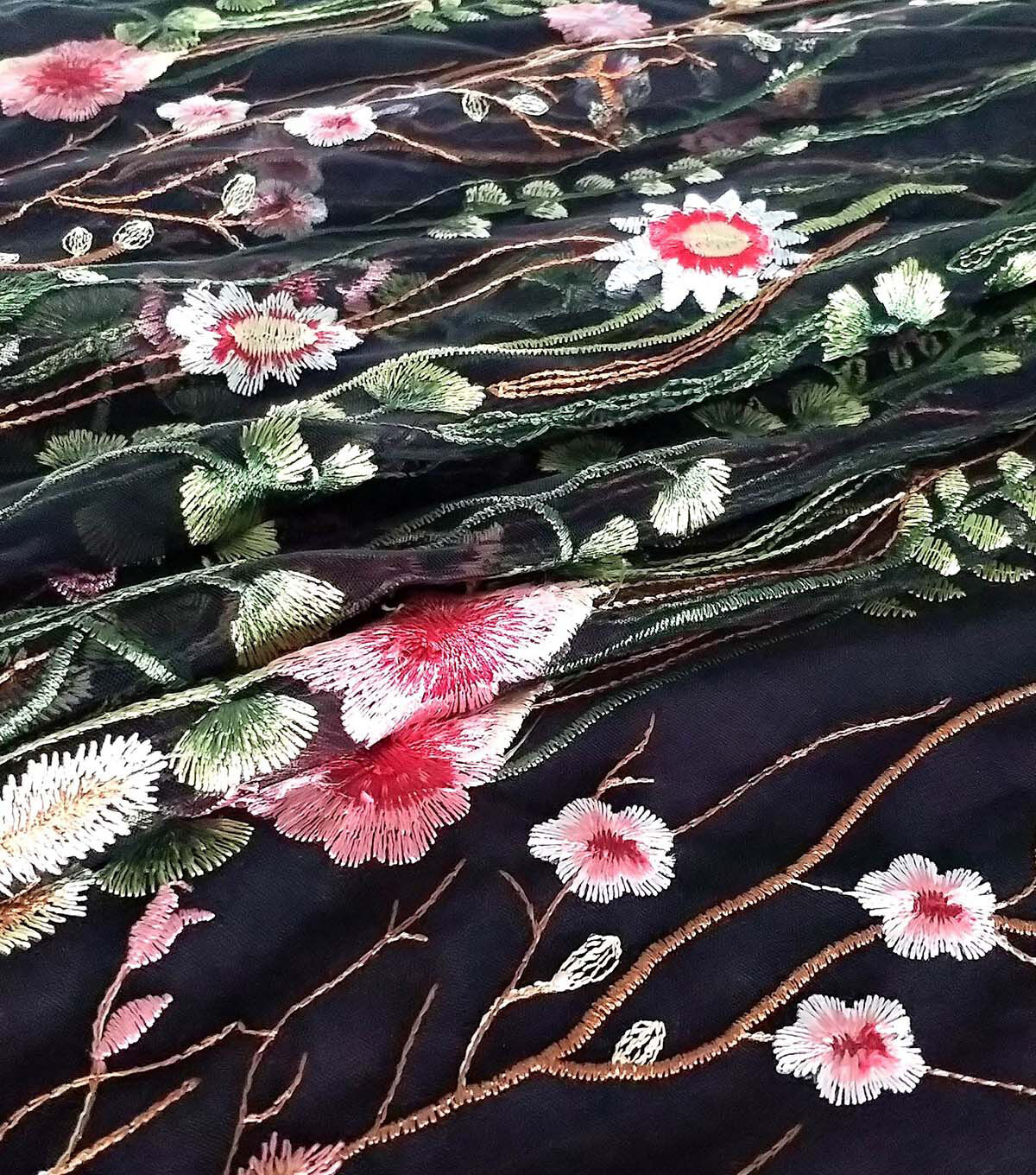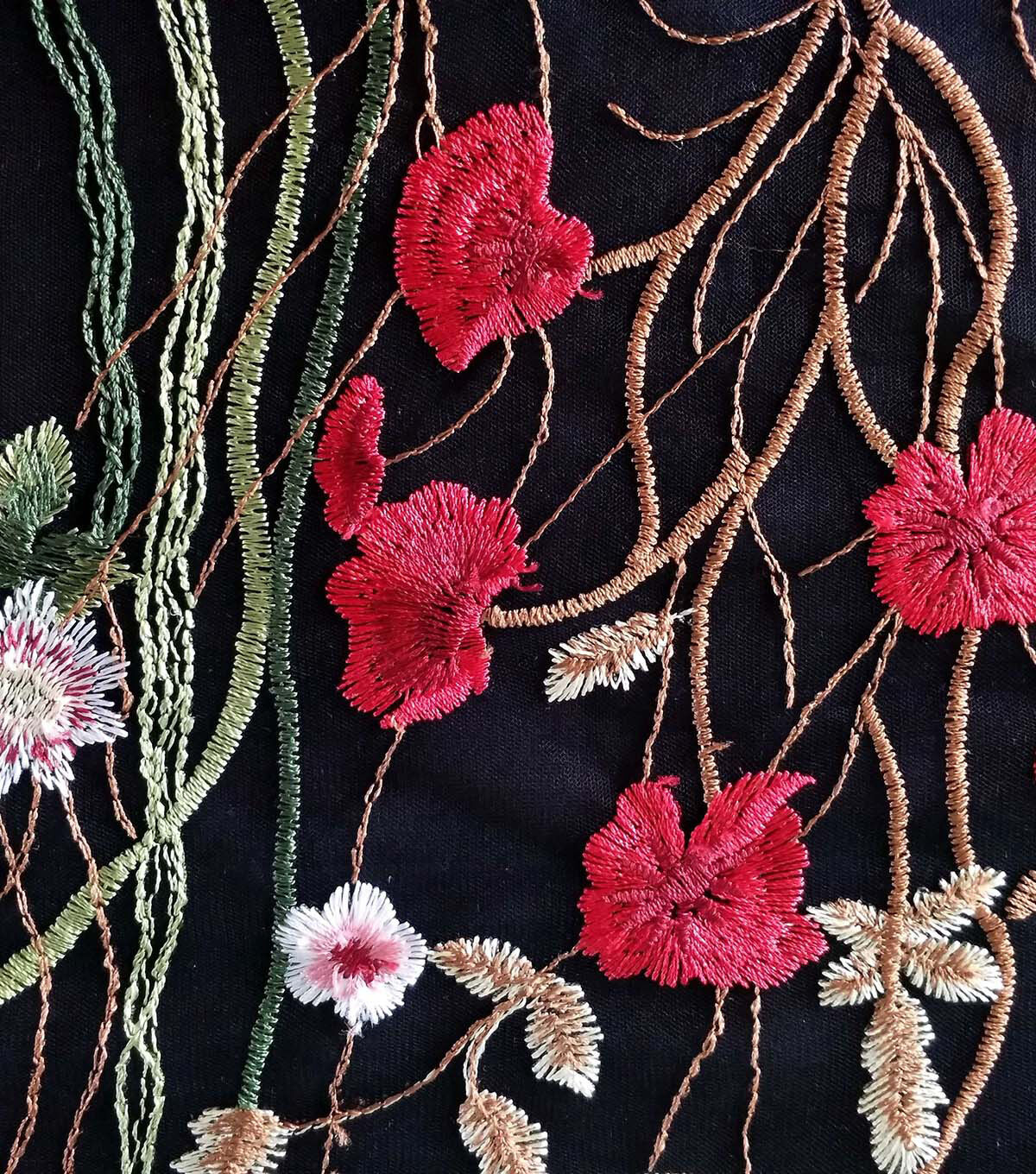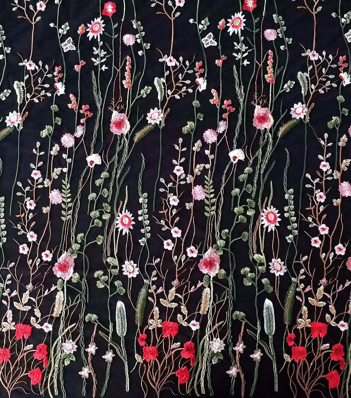 Embellished Fabric Black Floral Butterfly