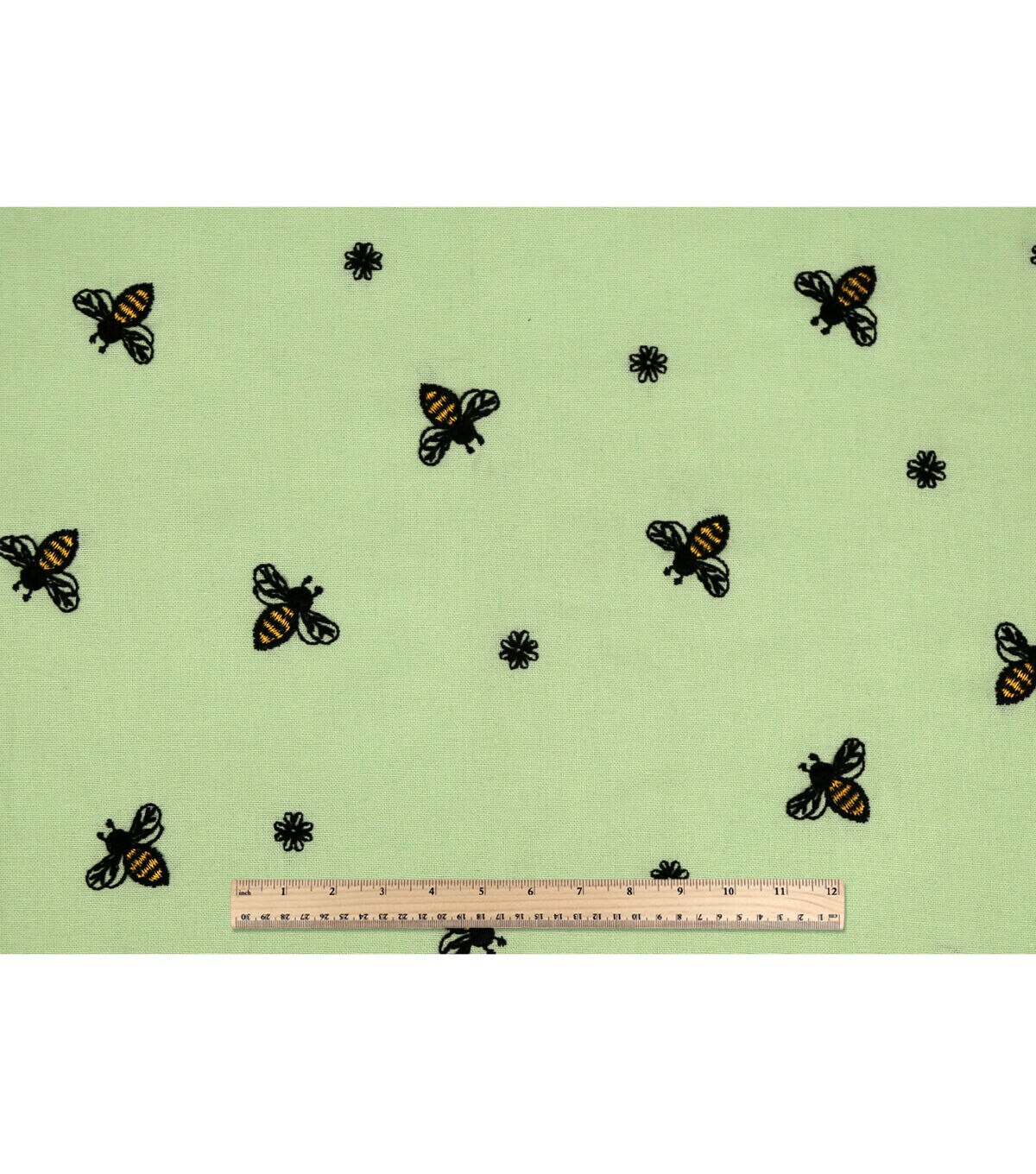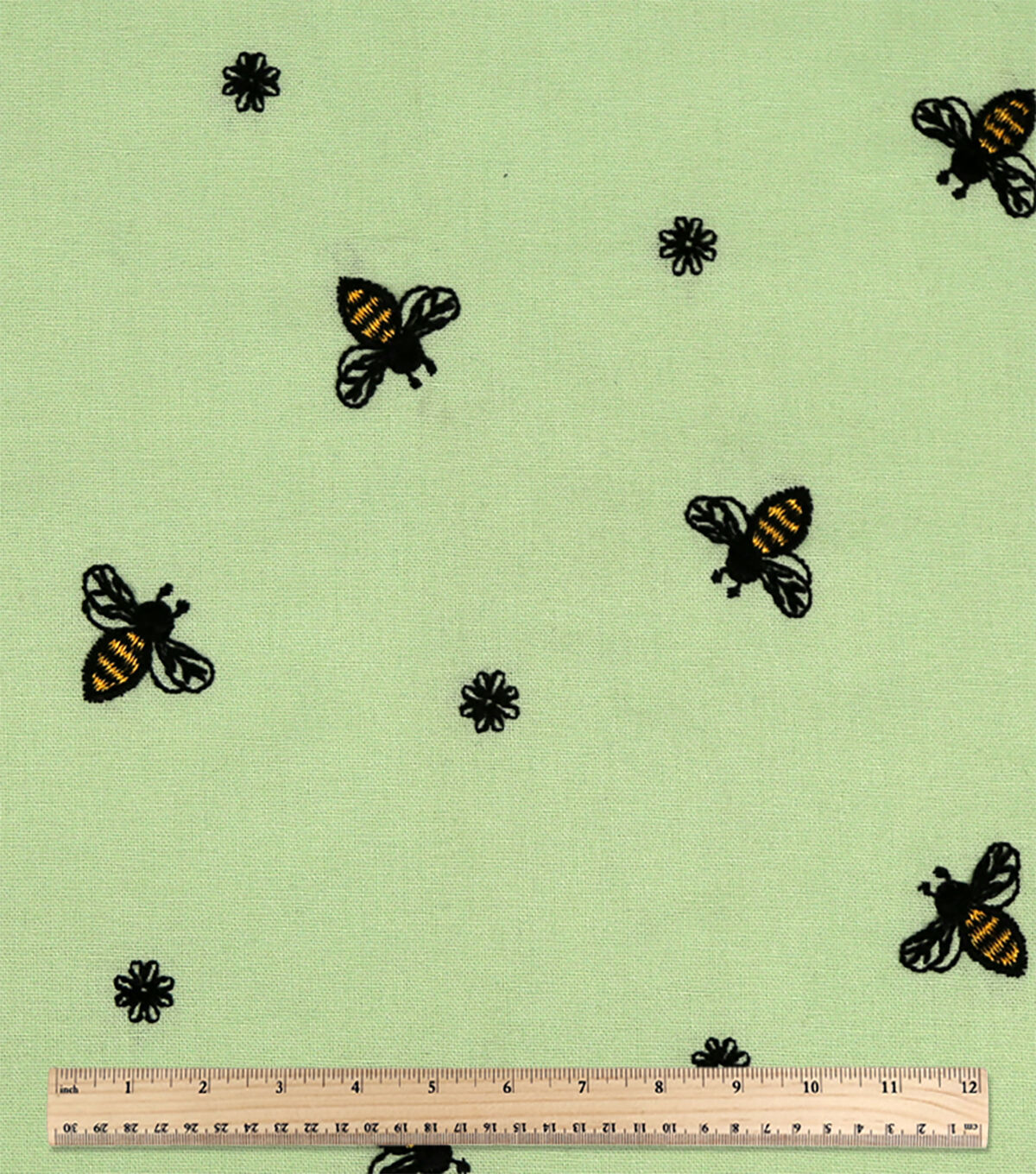 • Embroidered Bees on Green Quilt Cotton Fabric by Keepsake Calico