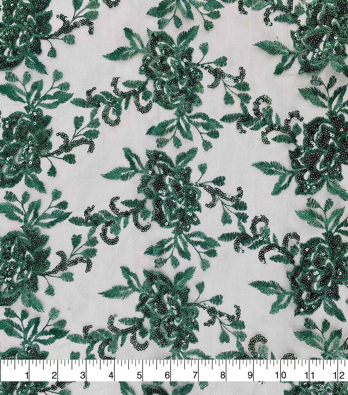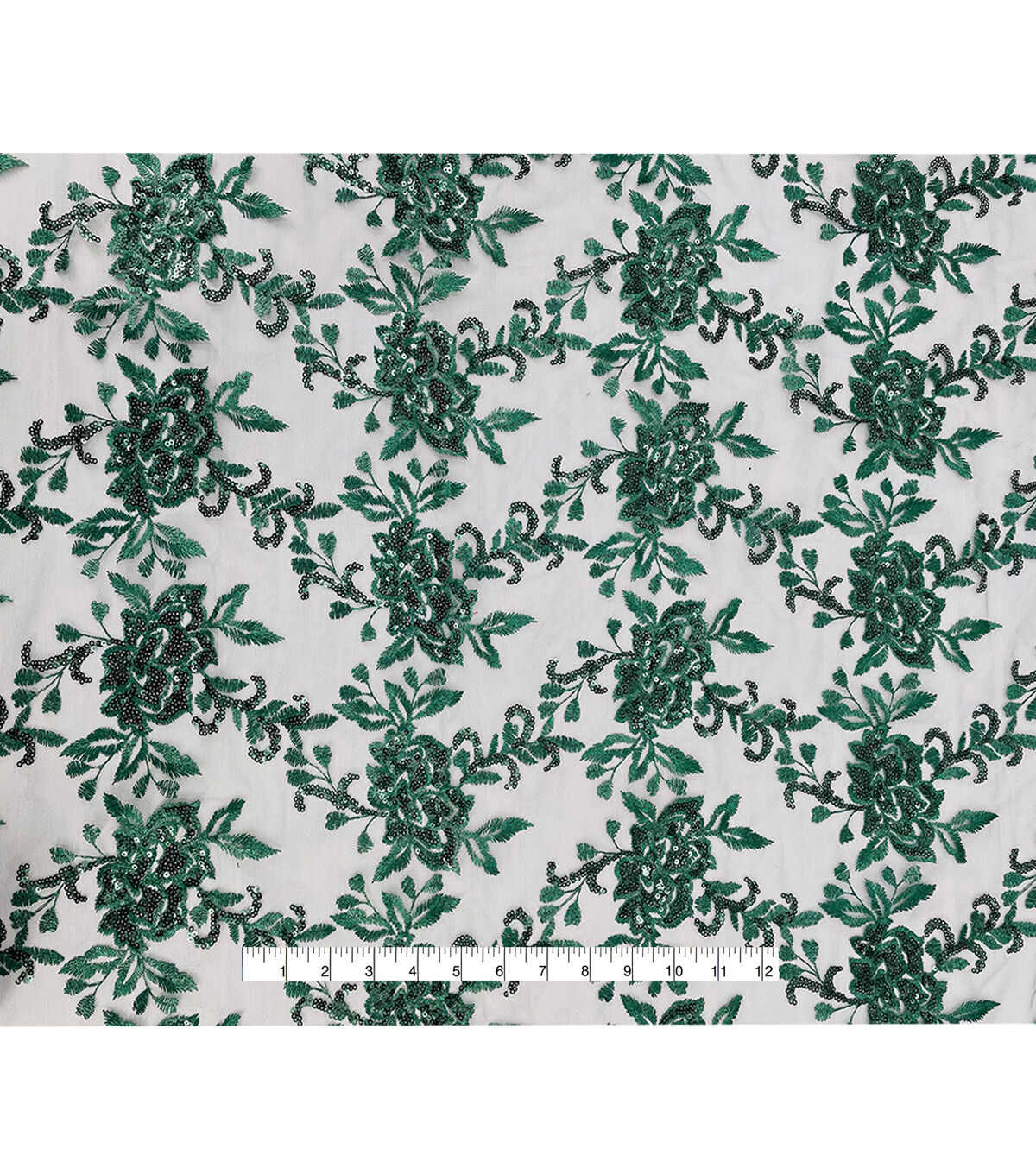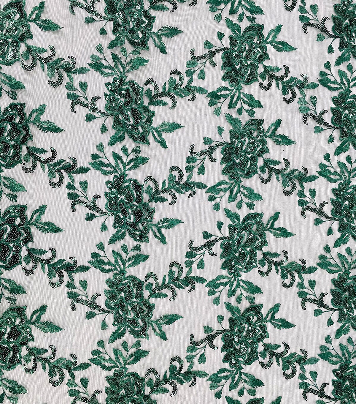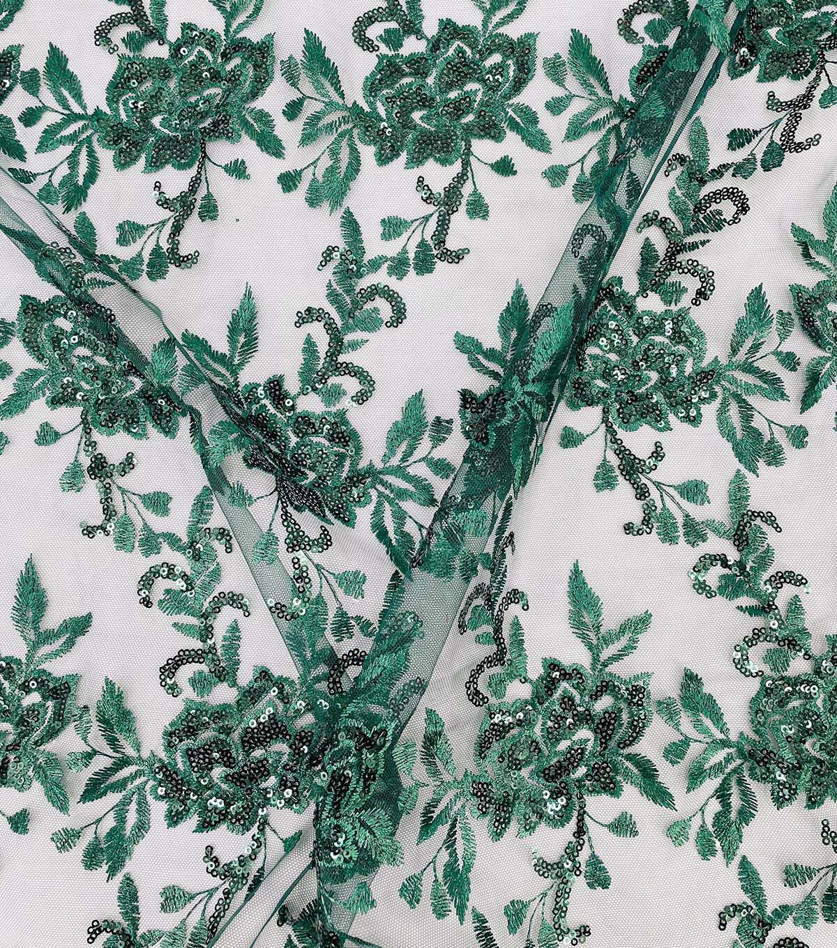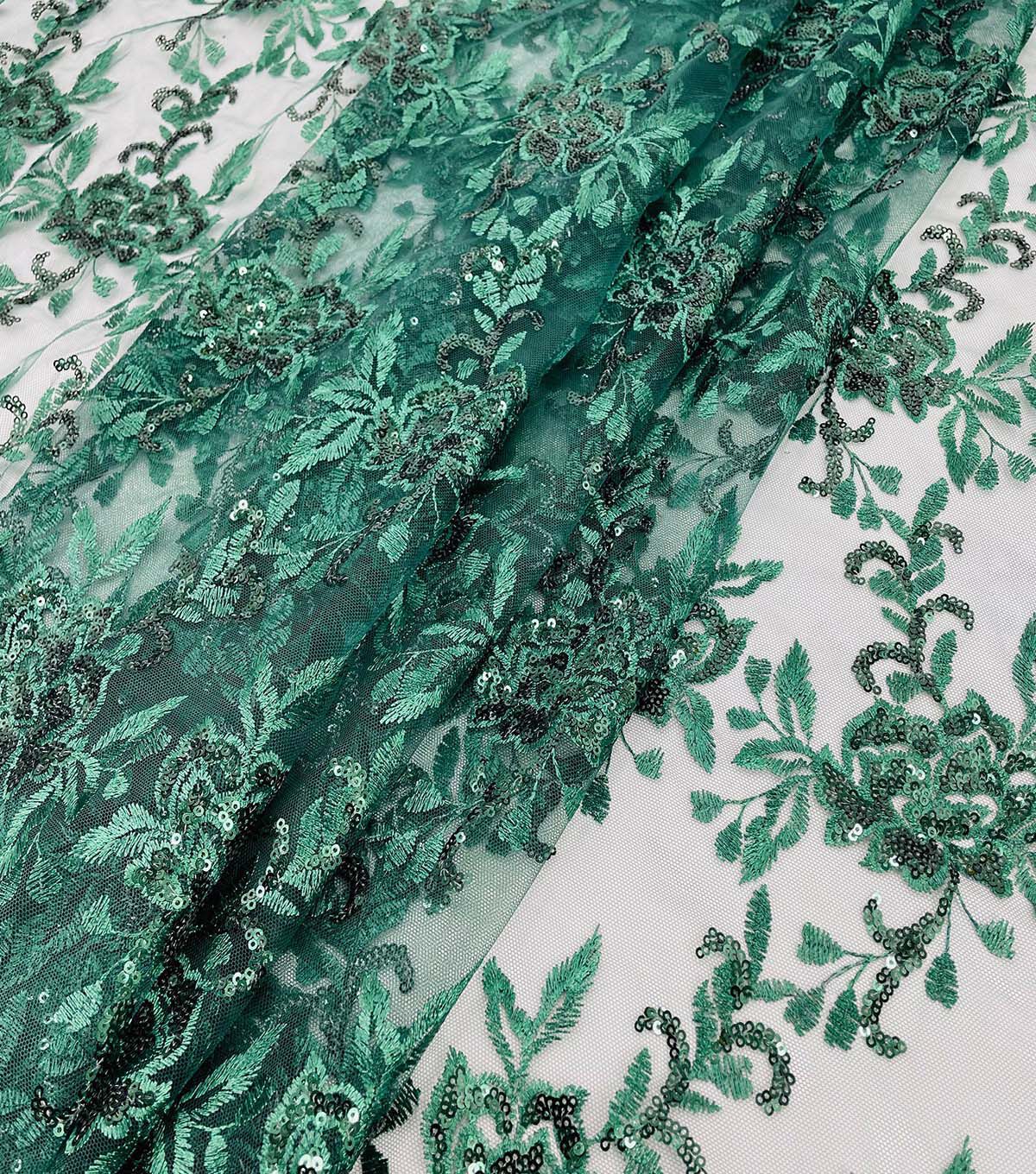 Embroidered Rose with Sequins Green Fabric