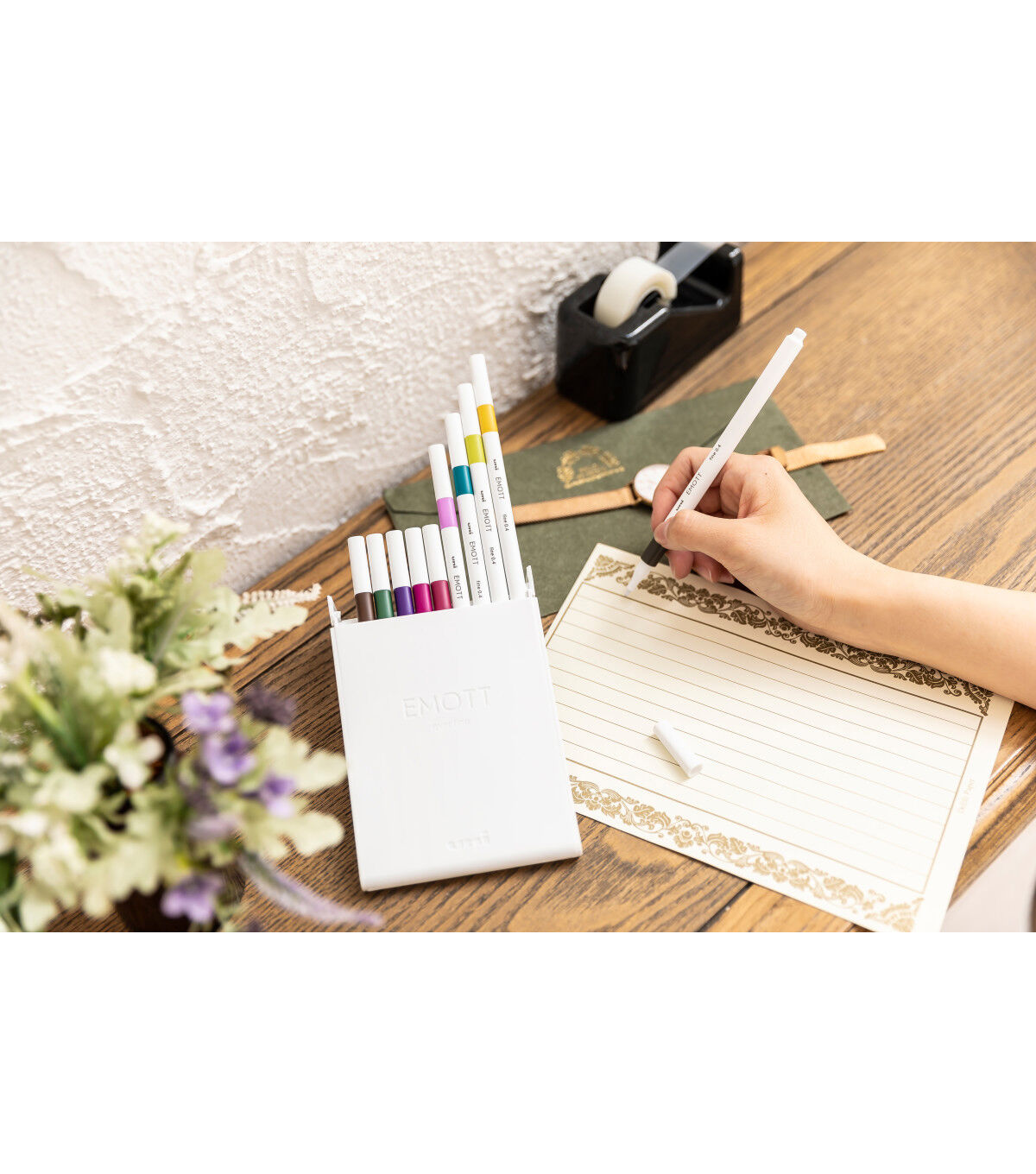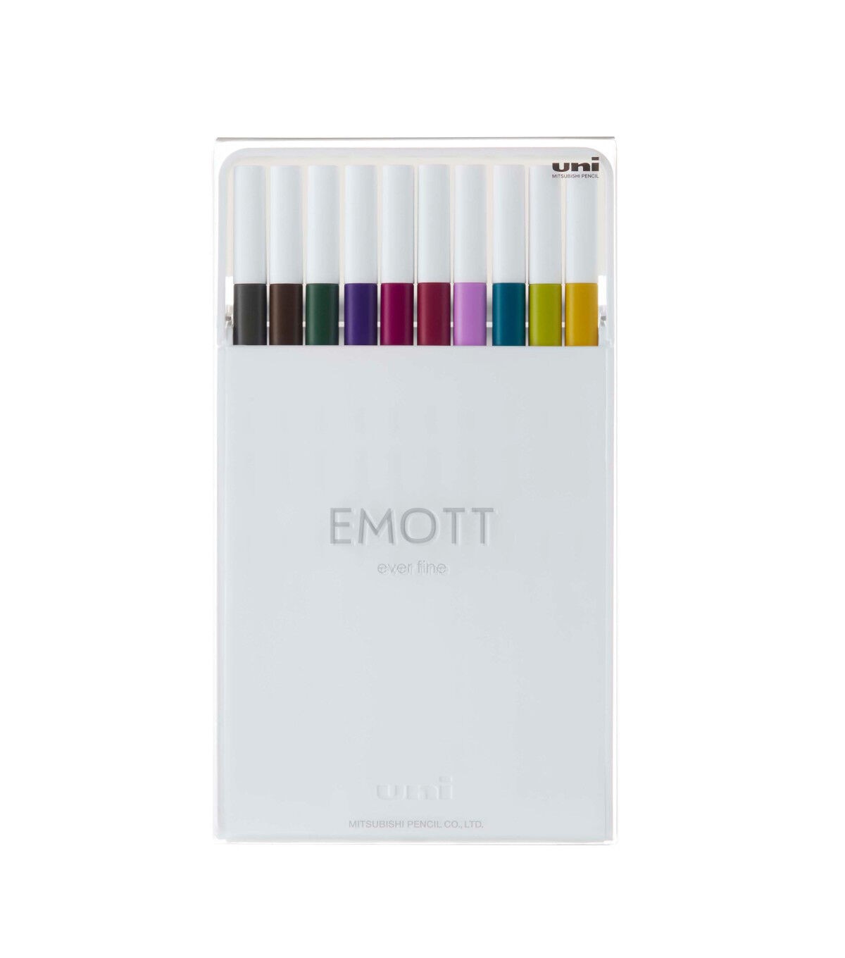 Color coordination and expression has never been easier or more fun! The EMOTT Fineliner is meticulously designed for durability and smooth writing, with a specialized tip that ensures consistent line-width at any angle or pressure. This set features an assortment of colors that evoke a specific mood, season, emotion and style. Enjoy a clear, fine line with excellent color coverage. Ideal for bullet journaling, stationary, hand lettering and note-taking. This set also comes with a sleek flip-top case that can be angled for desk use then flipped back for easy storage, perfect for people who love to enjoy, treasure and showcase their stylish stationery. Includes gray, dark brown, khaki green, violet, amethyst, red wine, iris purple, blue green, apple green and straw yellow.