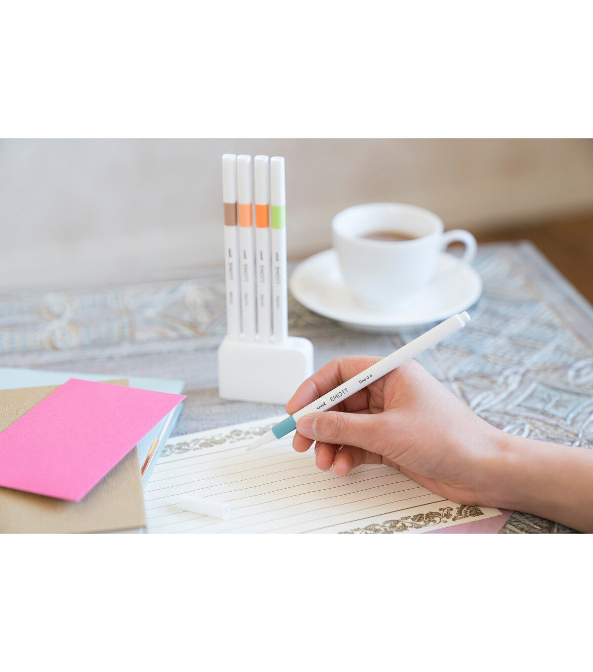 Color coordination and expression has never been easier or more fun! The EMOTT Fineliner is meticulously designed for durability and smooth writing, with a specialized tip that ensures consistent line-width at any angle or pressure. This set features an assortment of colors that evoke a specific mood, season, emotion and style. The Nature Colors set includes beige, light orange, bright yellow, light green and sax blue. Enjoy a clear, fine line with excellent color coverage. Ideal for bullet journaling, stationary, hand lettering and note-taking. This set also comes with a stylish stand to store and display your pens, perfect for people who love to enjoy, treasure and showcase their stylish stationery.