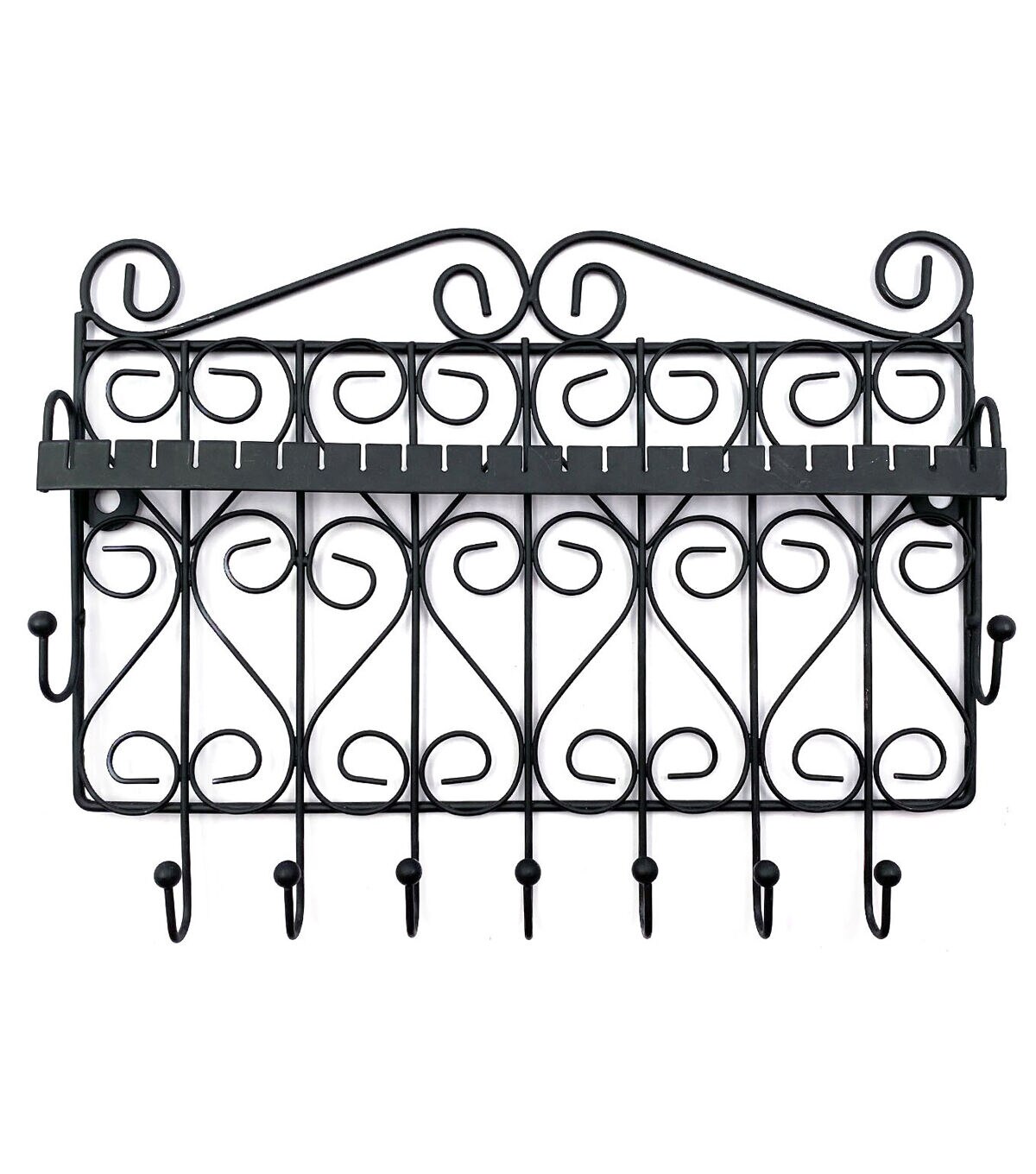 Revamp your jewelry display with the Enchante Wall Hanging Jewelry Holder. This black jewelry holder is designed with ornate scroll patterns for a decorative look. You can mount it on a wall in your room, and hang multiple chains, bracelets, and other accessories on its hooks.