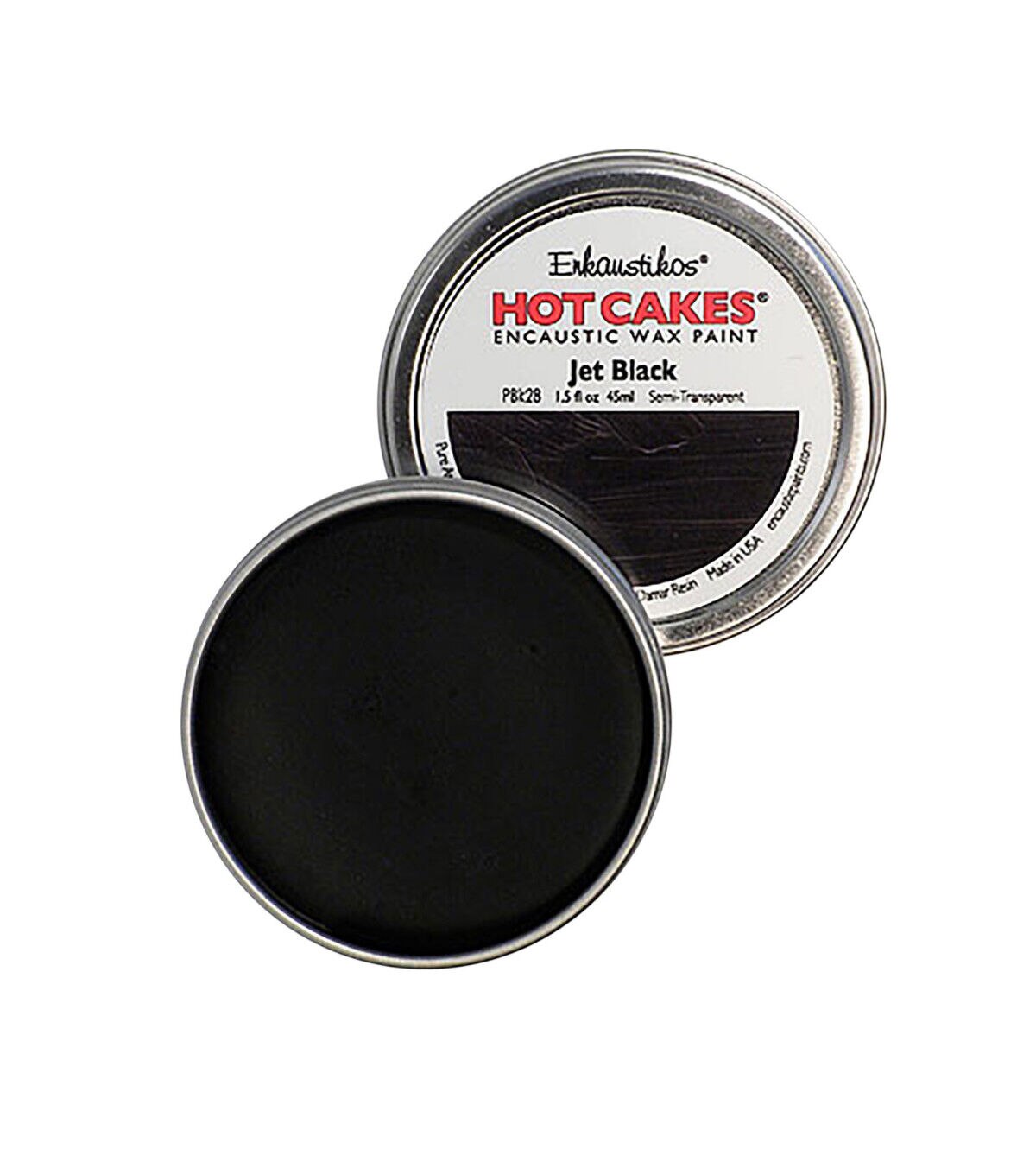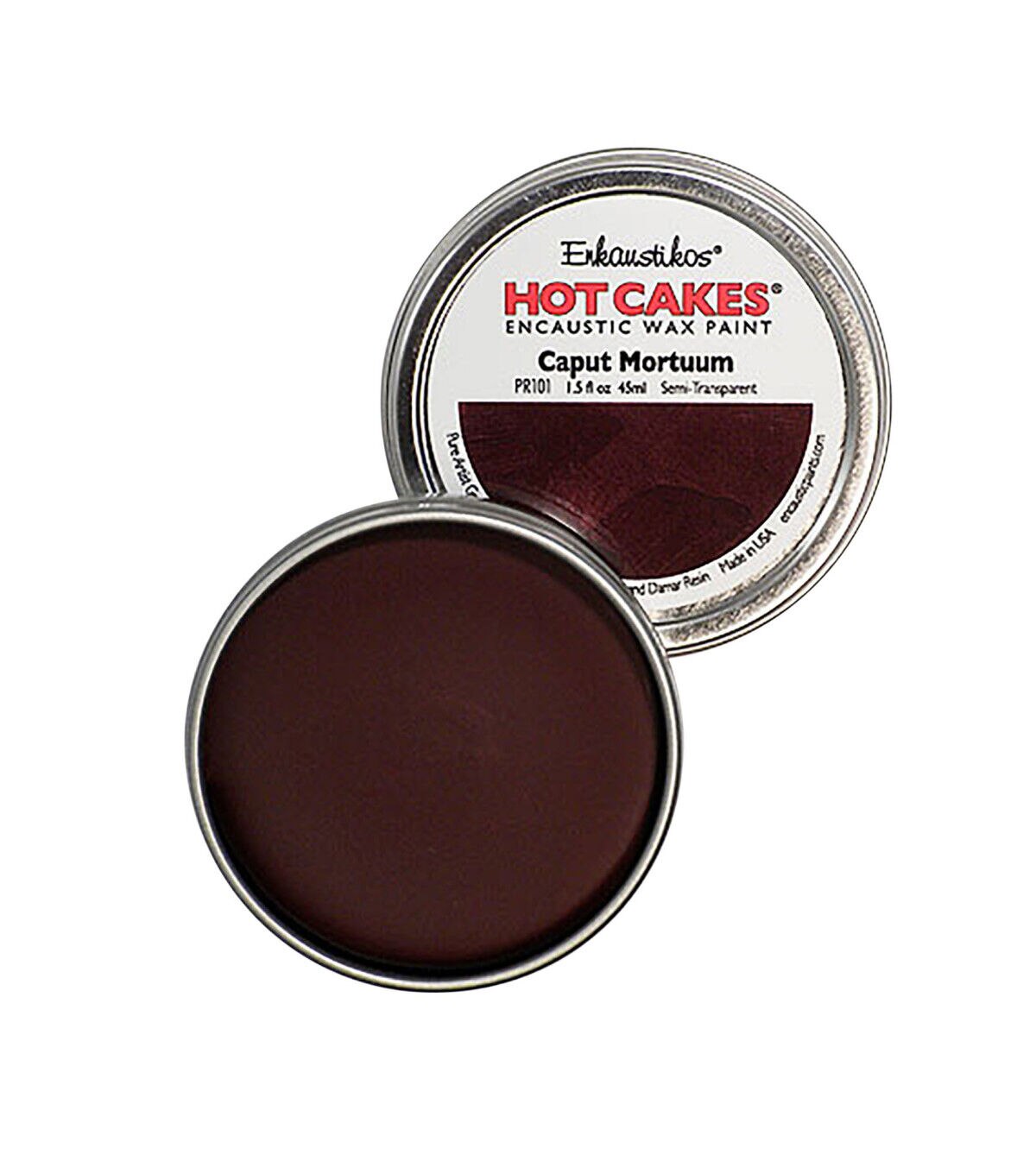 The Hot Cake is a ready-to-use encaustic wax paint housed in a convenient metal tin you can heat up directly on your palette.