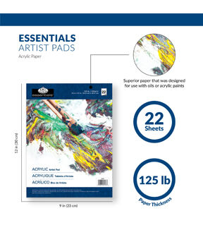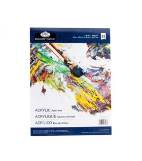 Royal Brush-Essentials Acrylic Artist Paper Pad. The perfect size for your purse or backpack. Suitable for use with watercolor paints. This package contains one paper pad with twenty-two 9x12 inch sheets. Imported.