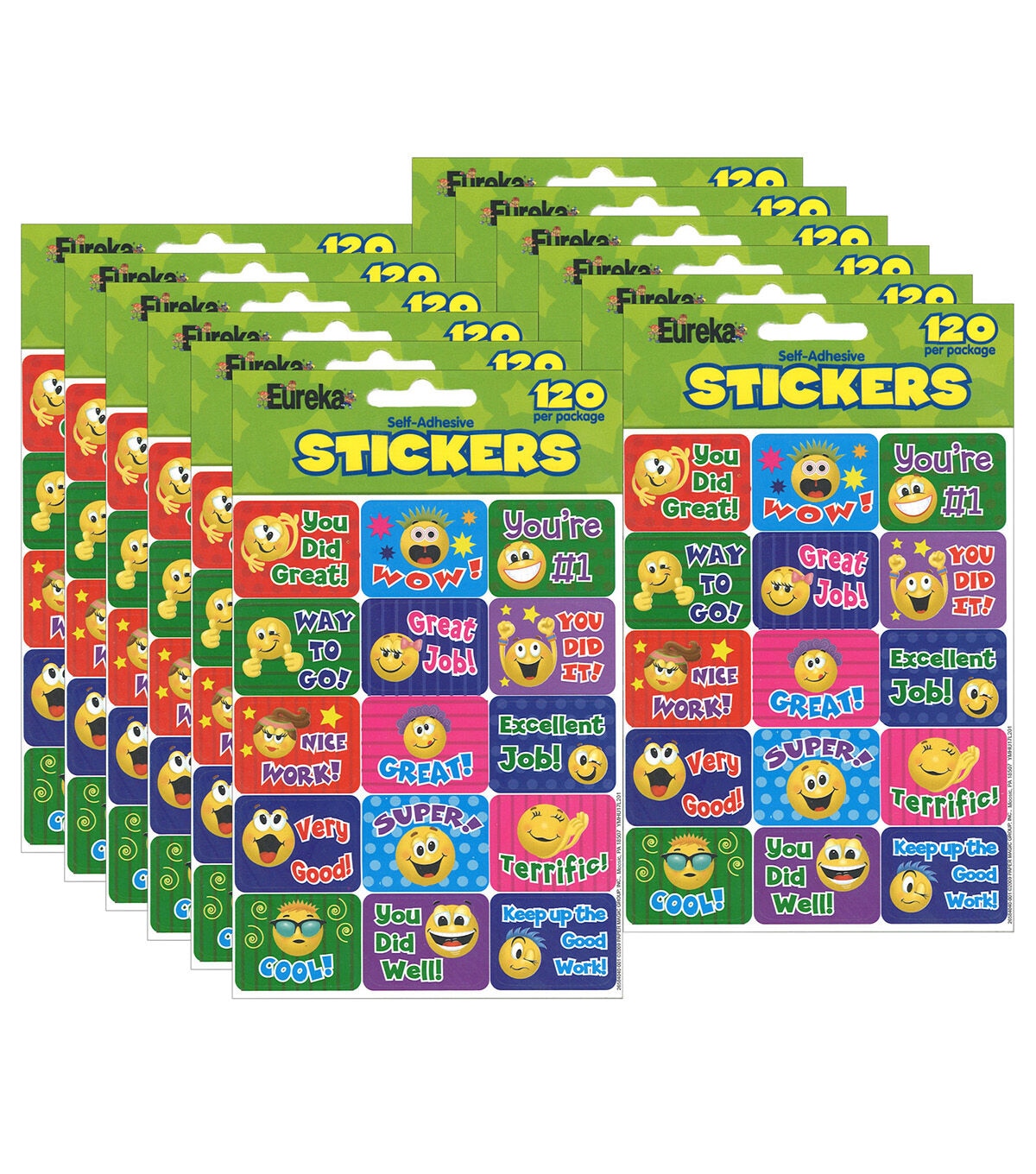 The choices are endless with Eureka stickers. There are hundreds of ways to utilize this versatile format at home or in the classroom. Stickers measure 1 3/8" x 1". Each pack includes 120 stickers, 12 packs, 1440 stickers total.