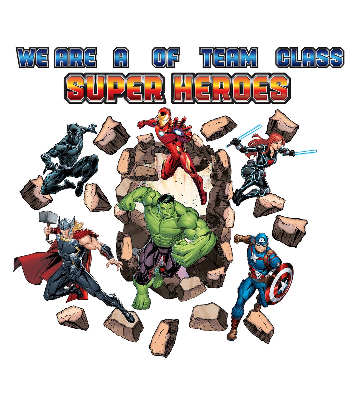 Bring out the super heroes in your classroom with a 27 piece Eureka Bulletin Board set. Each set includes: 1 Rock Blast, 12 rock cut outs, 6 Marvel character cut outs, and a 7 piece We Are A Class Team of Super Heroes header. Packaged as (4) 17" x 24" panels. Coordinates with the Marvel Super Hero Adventure collection.