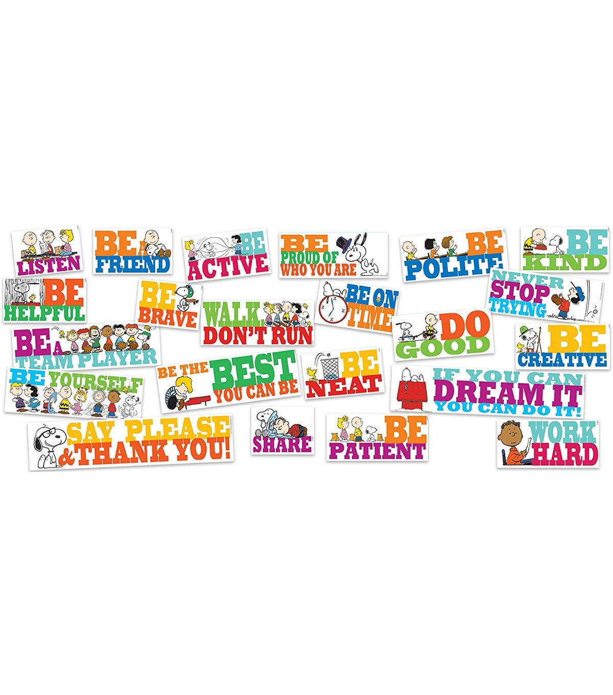 Eureka Schools Bulletin Boards are sure to bring any room to life. Includes 4 panels: 22 positive and motivational phrases.