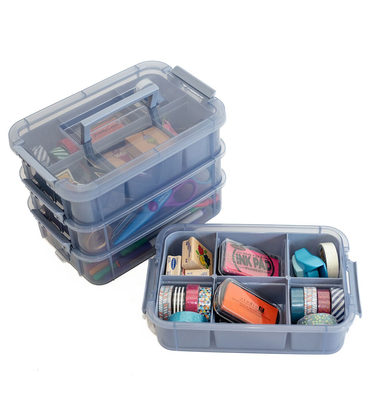 - Craft Organizer Made For You - Featuring four layers with dividers, storage tray is the perfect storage solution for all your crafting needs. Our clear tray boxes have adjustable individual compartments that can be adjusted to suit your needs. This storage container allows you to organize your supplies just the way you like them.