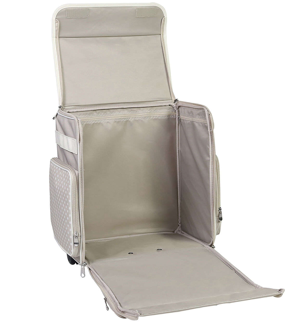 The Everything Mary Collapsible Rolling Craft Bag is the ultimate storage solution for any storage needs. This rolling organizer cart is constructed with durable polyester and features premium zippers, piping, and an Everything Mary emblem. Seventeen total storage spaces are built into this scrapbook storage case for all of your tools, sewing notions, or other supplies. The main compartment on this rolling craft organizer is perfect for scrapbooking IRIS boxes, paper, crafts, containers, and so much more! In addition, this scrapbook rolling tote features a telescoping locking handle and a durable wheelset for secure craft storage—the Everything Mary Collapsible Rolling Craft Bag was made with crafters in mind.