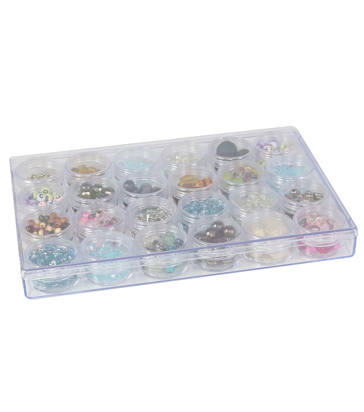 The Everything Mary Large Plastic Bead Storage Case with 28 Removable & Stackable Jars is a great craft organizers and storage option. This plastic storage container case is constructed from a high-quality durable plastic, ensuring that the contents of these case are safe and secure. This is made with an easy-open design, making accessing your items simple. 28 screw-top lids are included with this beading organizer. These are great for organizing your beads by shape, size, and color. These jars are also great for storing jewelry, sequins, buttons, legos, and small parts.