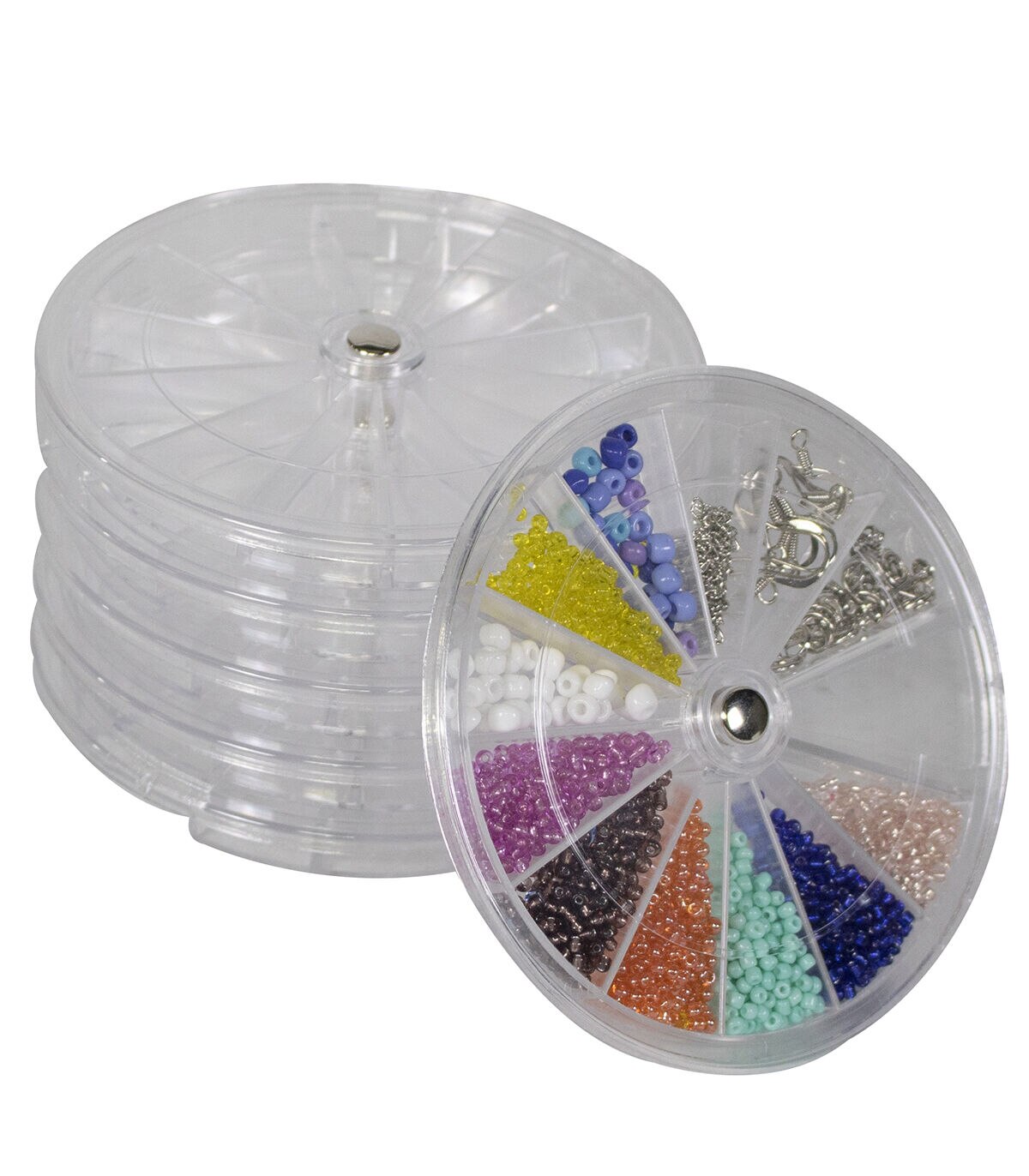 Keep your decorative strung beads tidy and organized in one place with the Everything Mary Plastic Spinning Storage Organizer. It's spinning and clear design lets you quickly find and access the stored items. This storage organizer features six individual trays, each of which has multiple storage compartments. You can stack all the trays together for convenient storage.