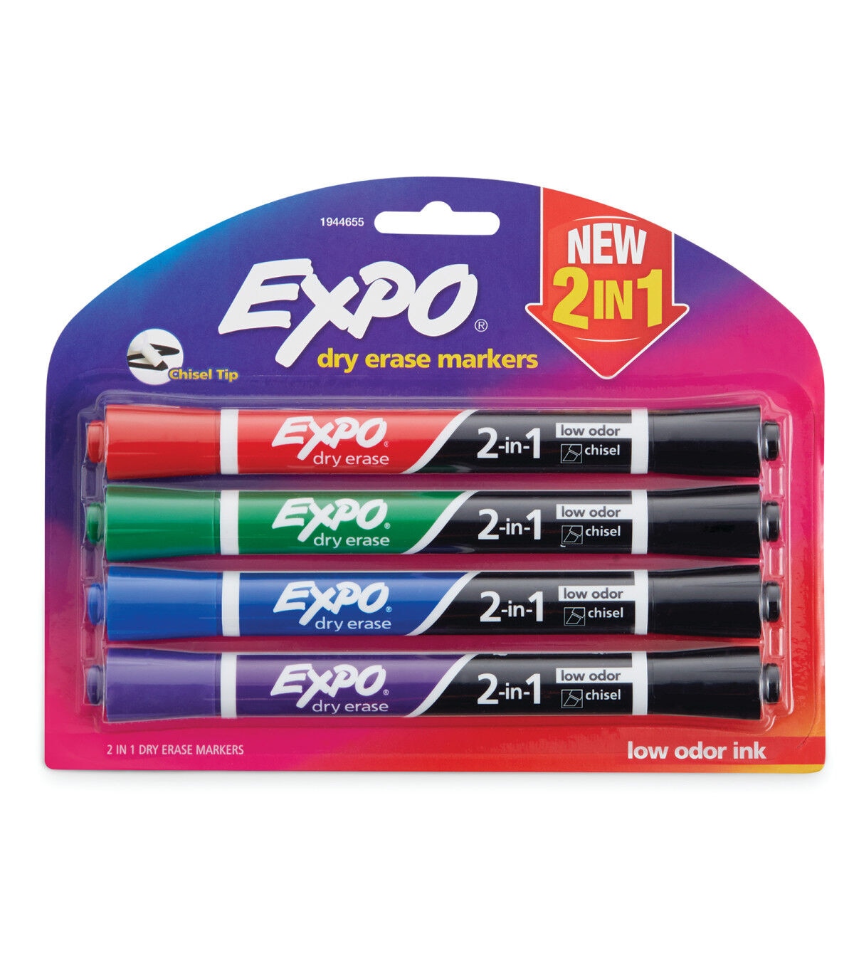 Great for color coding, memos, notes, brainstorms and presentations, these vibrant dry erase markers are erasable from porcelain dry-erase boards as well as glass and unpainted metal. The dual-ended features allows you to easily switch between colors.