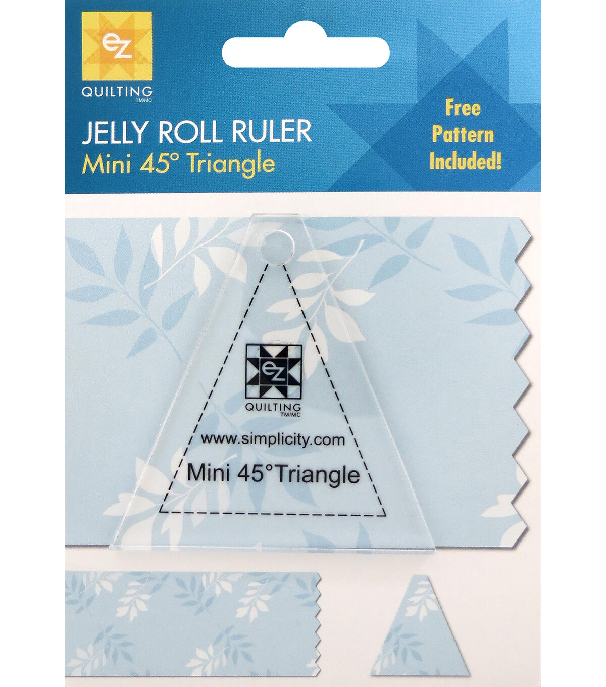 Use the Ez Quilting Darlene Zimmerman Mini 45-degree Triangle Jelly Roll Ruler to cut triangles from a jelly roll strip. Eight of these triangles will make a complete circle. You can also make a square block by sewing an Easy Angle triangle to the four corners. Create interesting circular blocks using this tool. The triangles can be sewn together in rows, alternating the top and bottom of the triangles.