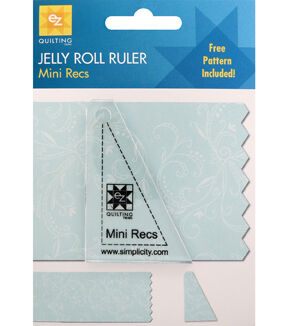 The Ez Quilting Darlene Zimmerman Mini Rectangle Jelly Roll Ruler is a rotary cutting tool that will help cut divided rectangles from a jelly roll strip. It can be used with the Mini Triangle Jelly Roll Ruler to create a triangle within a square. This jelly roll ruler will help you create those rotary cuts in 2.5-inch half rectangles and comes with the ‘magic angle’ for accurate piecing.