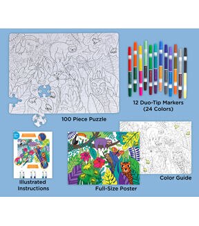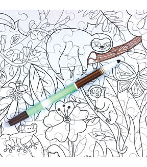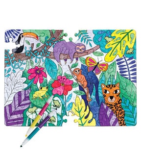- COLORING PUZZLE SET- Turn blank puzzle pieces into a vibrant and glowing jigsaw that is unique to you! Use the included bright, dual ended markers and color guide to reveal a fun jungle scene complete with sloth, monkey and flowers!