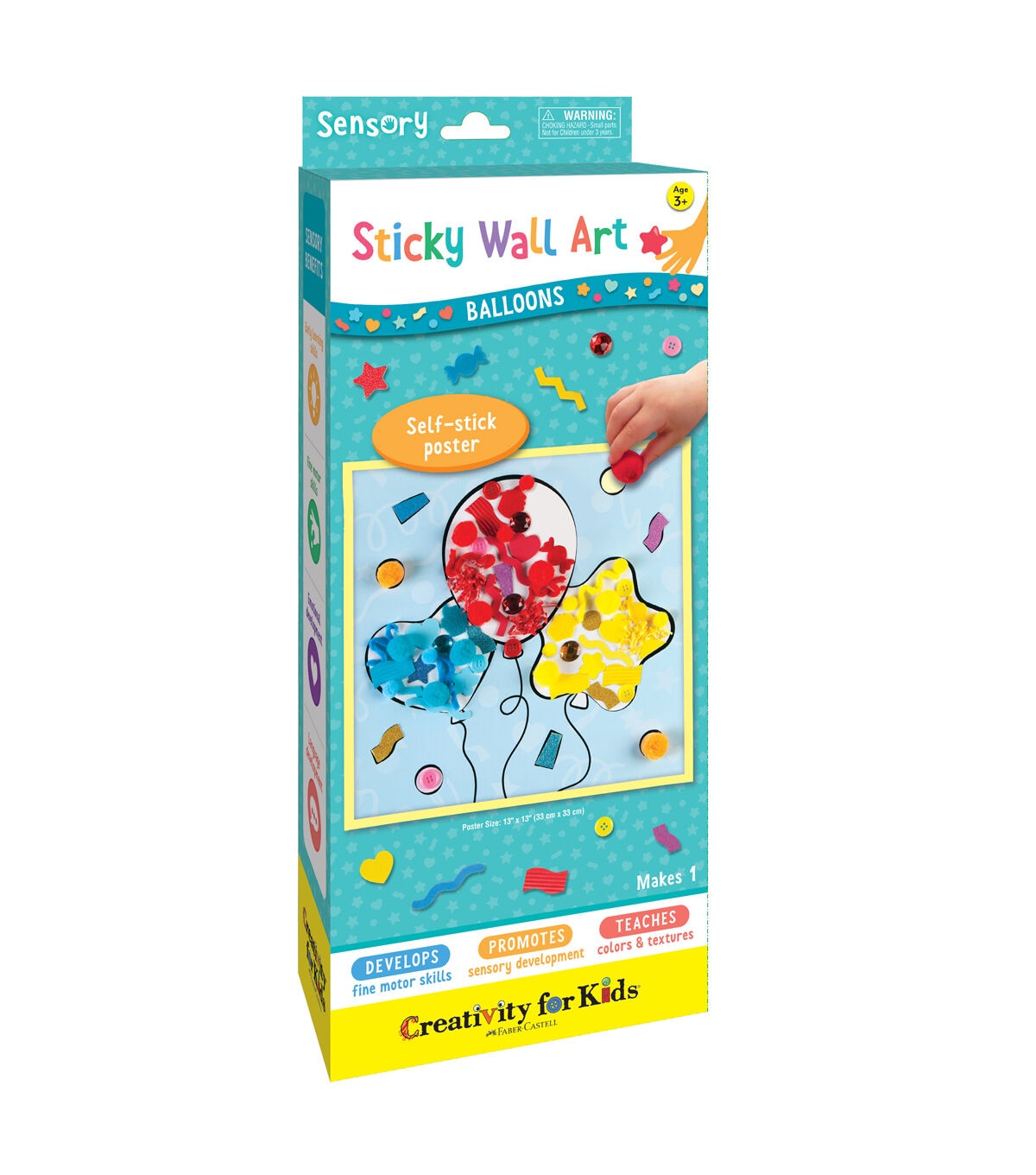 No glue needed! Designed with little fingers in mind, simply fill in the 13” x 13” sticky picture with the colorful sensory craft materials included. This calming craft builds creative confidence and encourages independent, quiet-time play. This sensory activity helps develop fine motor skills, color-matching and hand-eye coordination skills. The low-tack hanging strips provide a safe and accessible craft surface that can be played and displayed on walls, doors and other flat surfaces