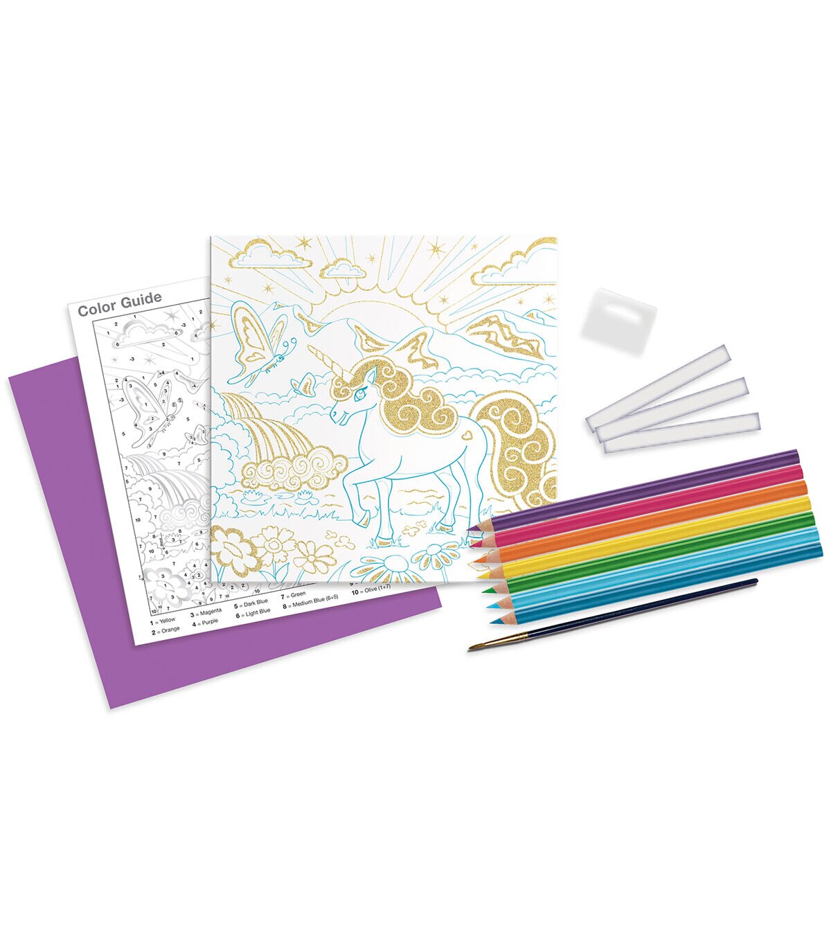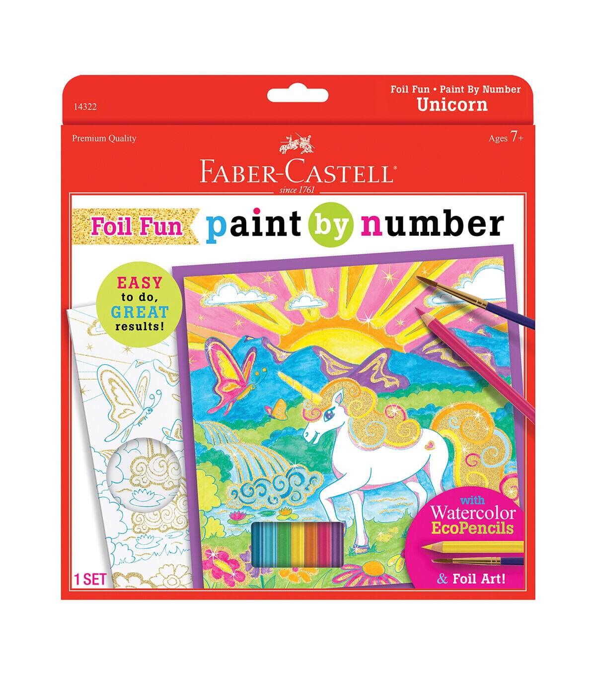 The Faber-Castell Paint by Number Foil Fun Kit-Unicorn is a must-have activity for unicorn fanatics. Its foil design is fabulous, and the paint is in the EcoPencils. This set includes seven Faber-Castell watercolor EcoPencils, a 9-inch pre-printed illustration board, numbered colored guide, paint brush, foam display and mounting tape.