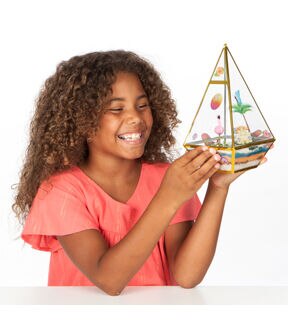 Dive into a tropical paradise with Creativity for Kids Tropical Terrarium! With this complete craft kit, you will decorate, plant and grow your own terrarium. Everything you need to start creating is included, just add water! This complete arts and craft activity comes with a plastic terrarium, polka-dot plant seeds, potting mix, a plastic fabulous flamingo, stickers, succulent and a golden pineapple. Add the colorful accessories to the terrarium in a unique and creative way to create a trendy container garden you will love to show off in your space. The Creativity for Kids Tropical Terrarium is an engaging craft activity that mixes the fun of art with the educational advantages of botany and container gardening. Creating your own terrarium teaches children about the plant life cycle, while building responsibility and nurturing skills.