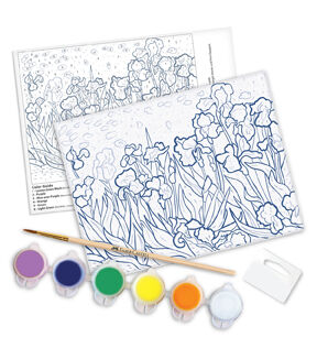 - VAN GOGH GIFTS: Everything you need to reproduce Irises by Vincent van Gogh is included, just add imagination! Comes with 6 colors of acrylic paint, artist canvas, paint brush, chipboard easel, color number guide and hang tab
