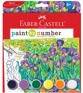 Learn to paint like the masters with the Faber-Castell Paint by Number Museum Series! Follow the included color guide to recreate Irises by Vincent van Gogh on real artist canvas with acrylic paint. Everything you need to paint the famous work of art is included, just add imagination! Paint by number for adults comes with 6 colors of acrylic paint, artist canvas (6” x 8”), paint brush, chipboard easel, color number guide and hang tab. The perfect paint by number for beginners and young artists alike! This Irises paint by number kit is recommended for ages 8+. Faber-Castell paint by numbers include separate color guide so artists can follow the guide or create their own unique art on the canvas! Illustrated instructions guide beginner artists on brush strokes, layering and blending. Instructions also include a link to an online video tutorial for extra visual demonstration! After painting and drying, display your completed Irises masterpiece with included hang tabs or a pop-up easel. Your completed paint by number canvas will add a beautiful Irises art to your room or office, handmade by you! The Faber-Castell Paint by Number Museum Series Irises features the absolute best quality art materials from Faber-Castell. Since 1761, Faber-Castell has proudly created arts and craft supplies and curated art kits designed to inspire art creation and self-expression for beginner, hobby, and professional artists.