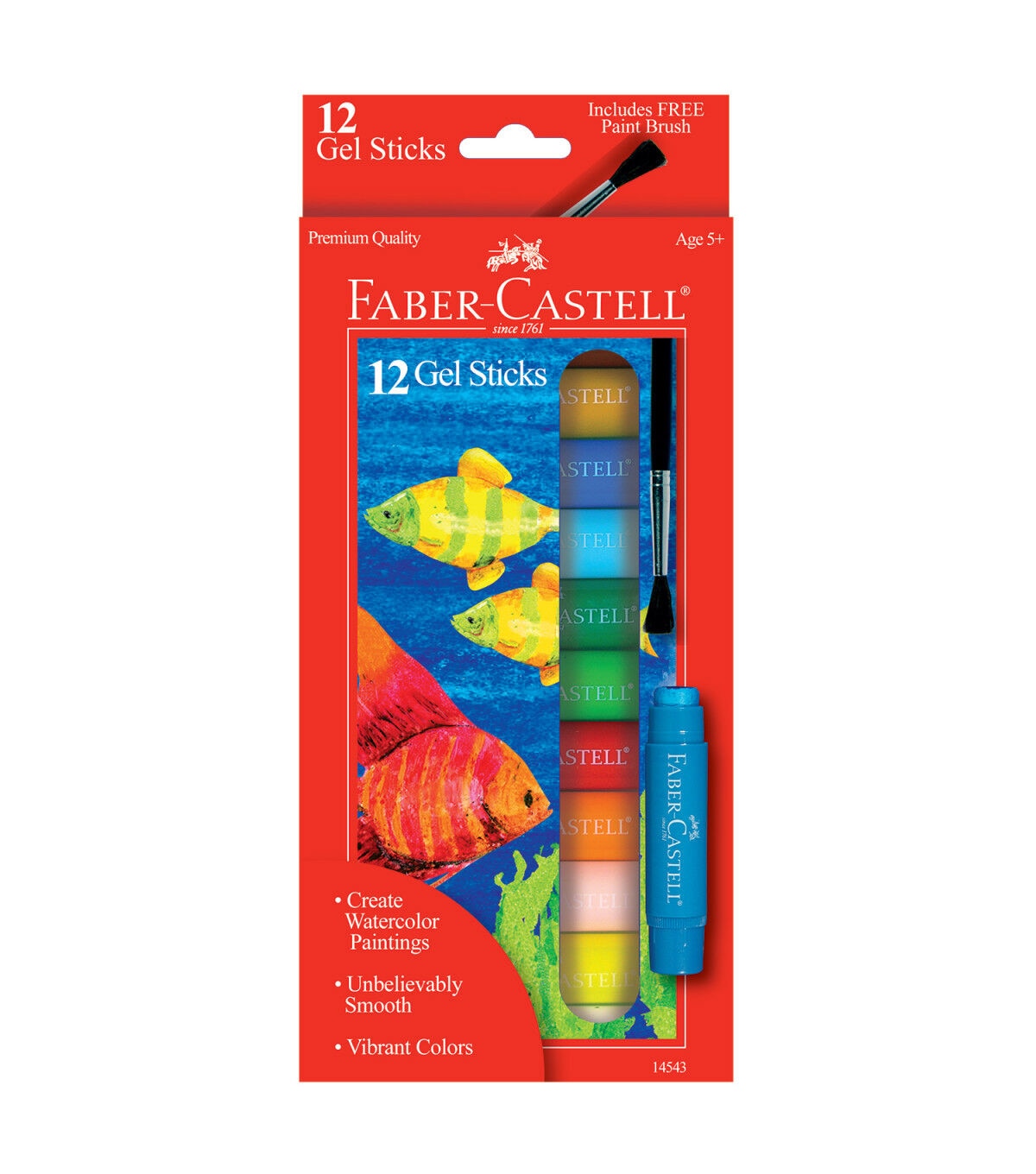 Color that glides on paper like magic! This set includes creamy, smooth gel sticks in 12 vibrant colors. They are water-soluble and can achieve watercolor effects when water is added. They can be layered and multiple colors can be mixed together for amazing artistic creations. The set includes white, yellow, peach, orange, red, light green, dark green, light blue, dark blue, ochre, brown and black gel sticks.