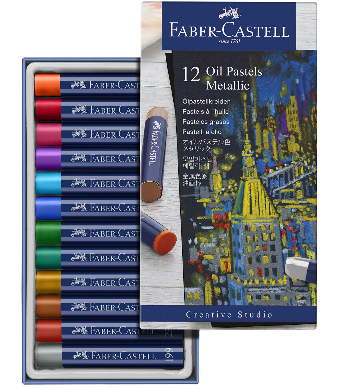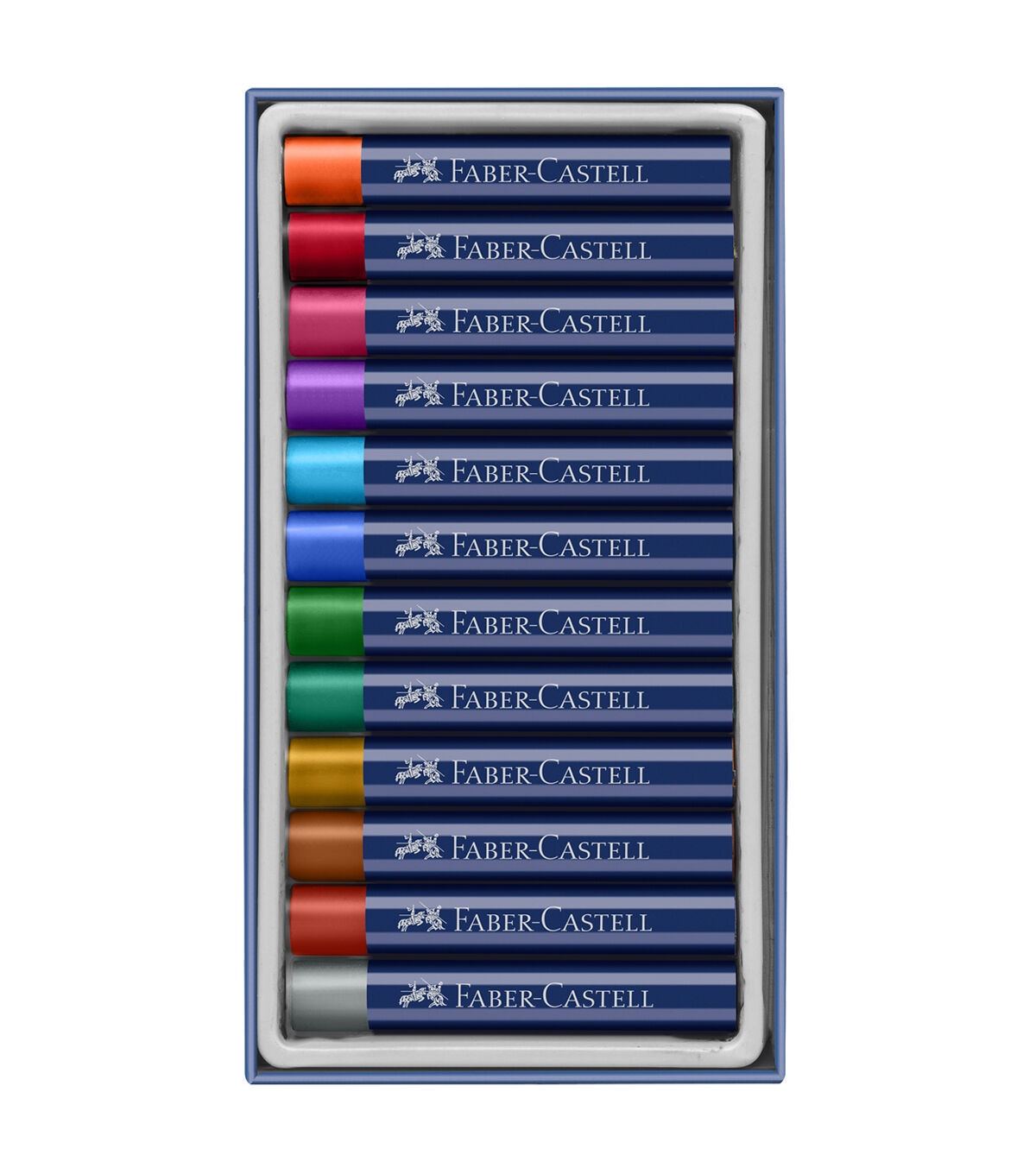 - CLASSIC COLOR SET - Set contains 12 Faber-Castell Metallic Oil Pastels available in a variety of traditional luminous color pigments