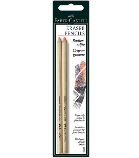 Faber-Castell Eraser Pencils are perfect for erasing unwanted marks, fine point erasing and also creating unique eraser effects. They erase black-lead, color pencils, and charcoal.