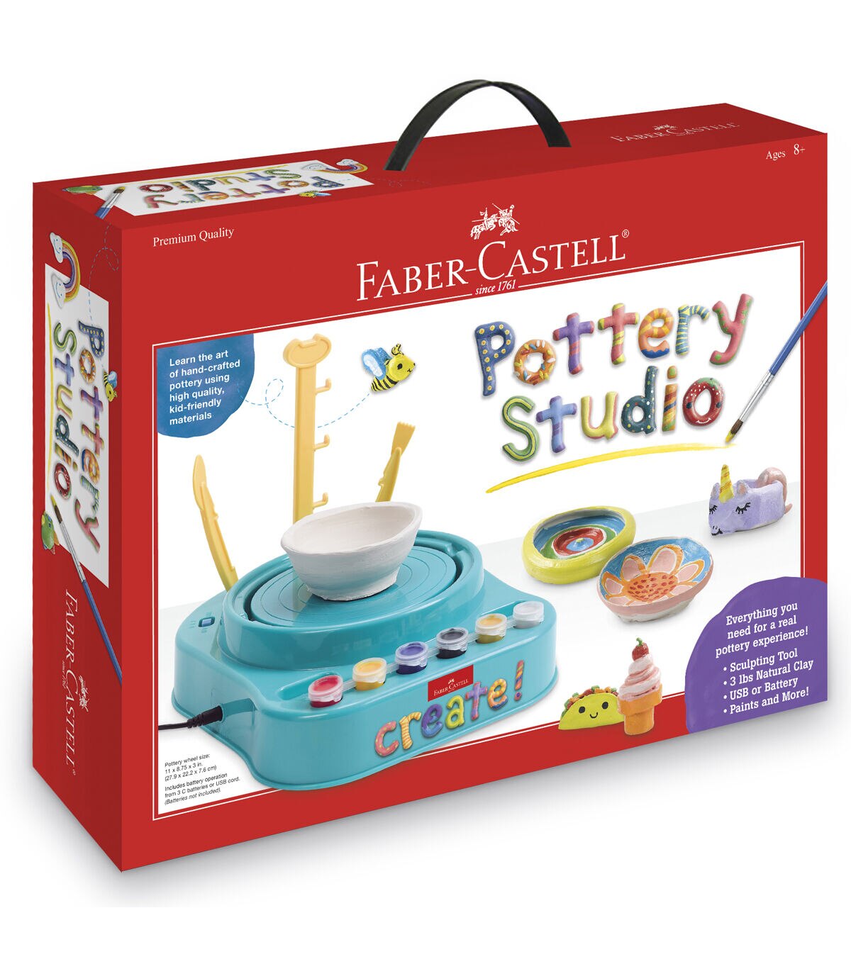 - POTTERY WHEEL FOR KIDS - Perfect for beginners! The Faber-Castell Pottery and Painting Kit comes fully assembled for a real pottery experience! Start creating right away with helpful illustrated instruction on using a pottery wheel and hand sculpting clay