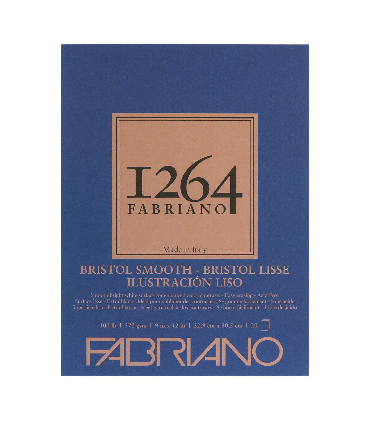This glue bound bristol pad can be used with pencil, colored pencil, charcoal, pastel, pen and ink, marker, light watercolor wash and airbrush. It includes 20 sheets of 100 lb (270 gsm) paper. The extra smooth texture provides a silky finish, ideal for detail and technical drawing that enables intricate work.