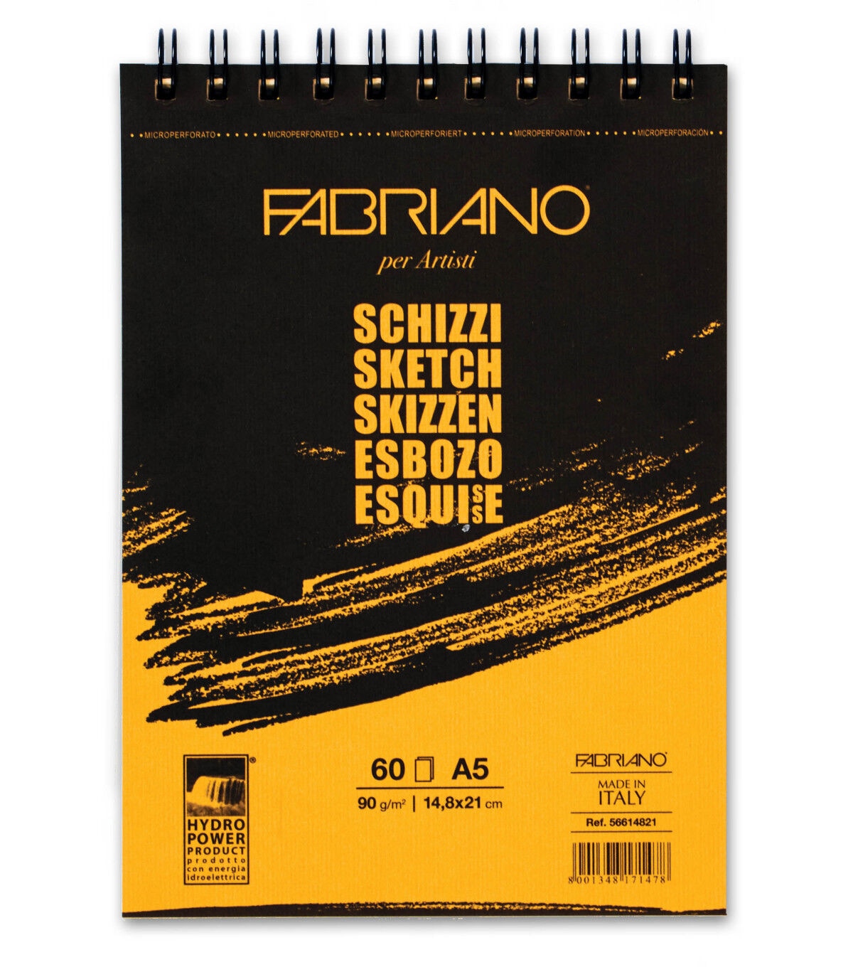 This Fabriano Schizzi Sketchbook features a pale ivory sketch paper with a medium texture ideal for drawing, sketching, pastel, charcoal and chalk. The spiral-bound sketchbook features micro-perforated sheets for easy removal and the side spiral ensures that the sheets of paper are true to size when torn out.