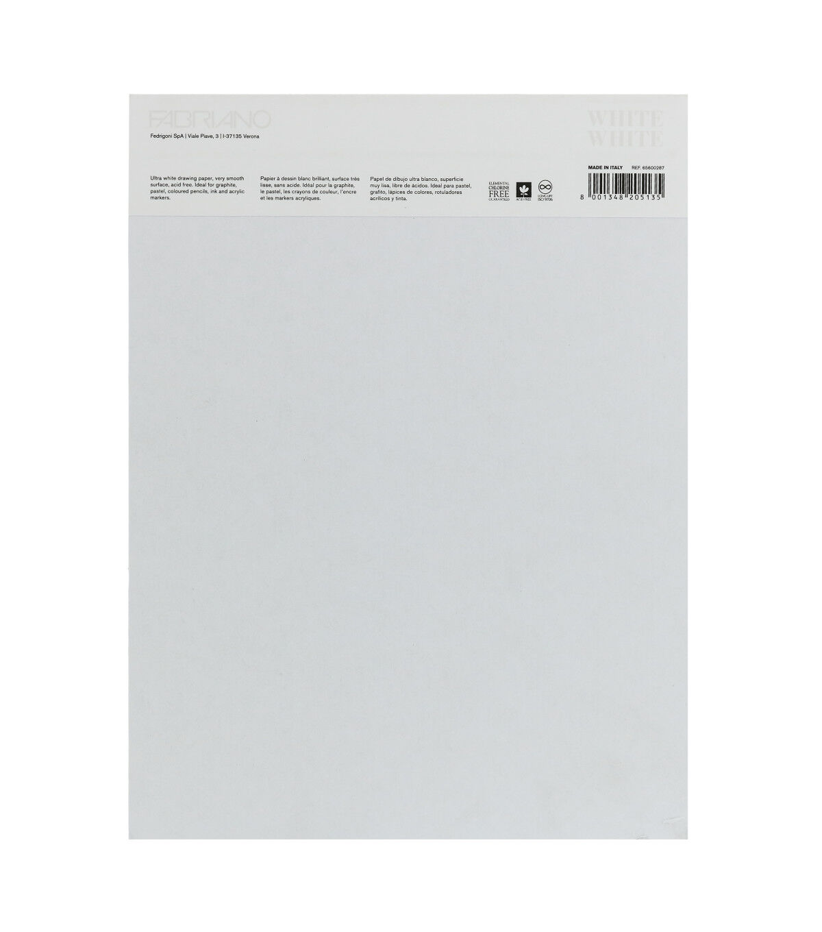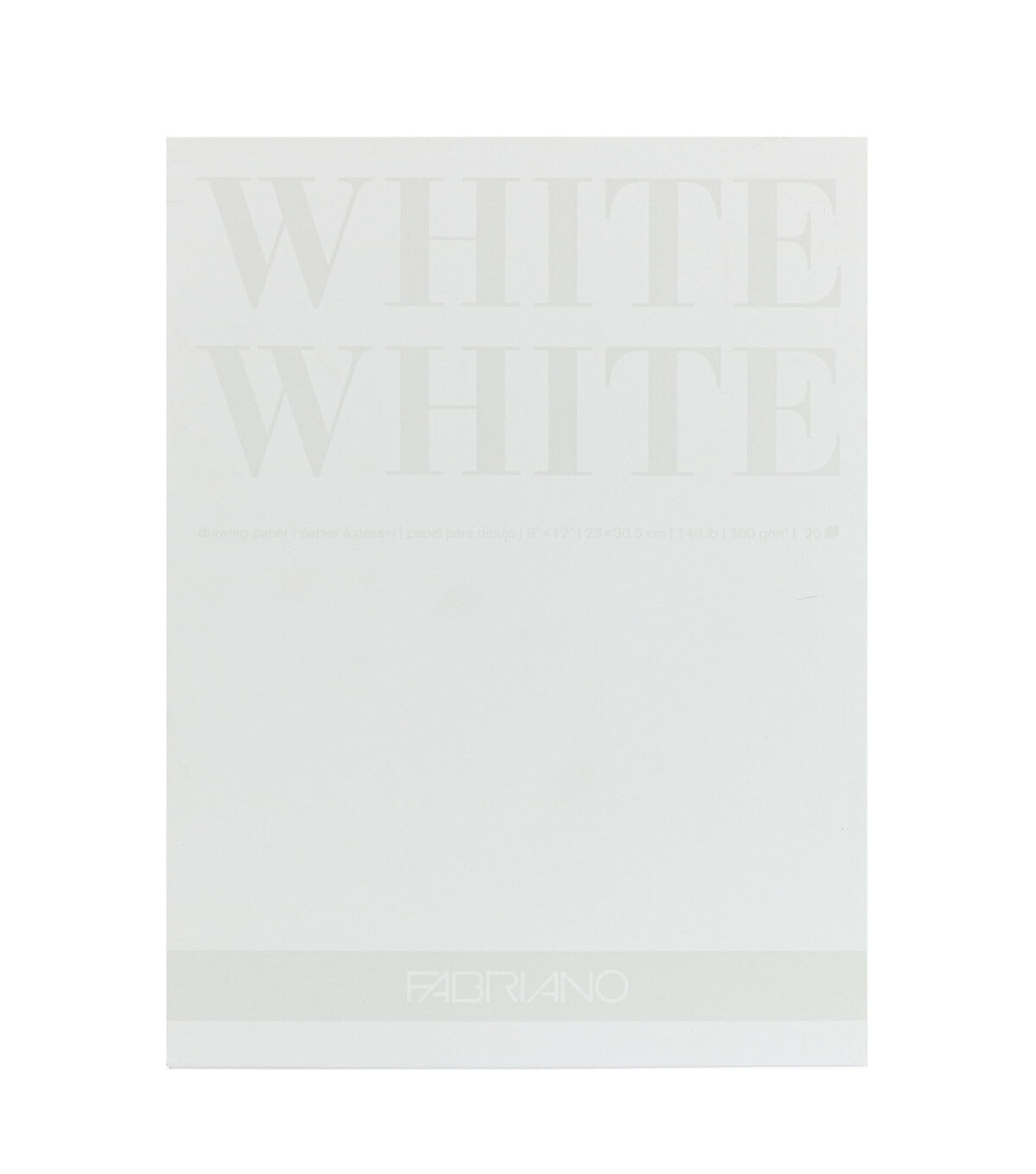 Fabriano WHITE WHITE Pads are available in a pad featuring a slick cover and burnished tone-on-tone printing. The pads are glued on top, and include 20 sheets of acid-free 300gsm (140 lb) paper, a versatile weight ideal for pastel, colored pencils and marker.