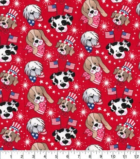 • Fabric Traditions Dressed Up Doggies Patriotic Cotton Fabric