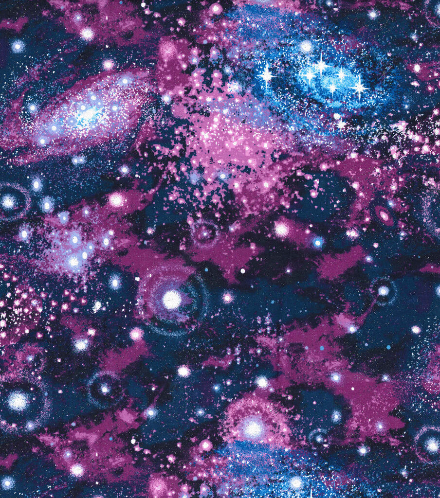 Bring the beauty of the galaxy into your home with the Fabric Traditions Galaxy Purple Novelty Glitter Cotton Fabric. The celestial bodies on this fabric create a mystical aura that will transform your sleep space into a dreamy escape. The glowing planets and sparkling stars will add a touch of magic to your quilts, bedspreads, and blankets. Not only is this quilting fabric visually stunning, but it also boasts a cottony softness that will provide an extraordinary experience every time you use it.